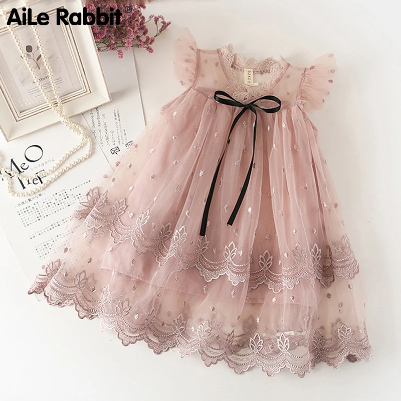 Летнее платье для девочек детская одежда из кружева Кружевное плать...