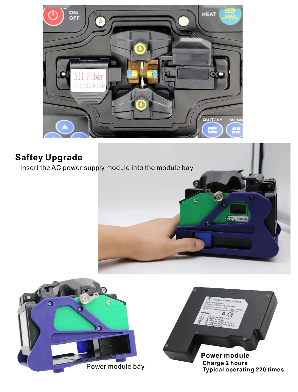 1. Твердость: Корпус изготовлен из титанового сплава, имеет функцию защиты от резины, водонепроницаемость, защита от пыли.2. Быстрая: 7s быстрое Сращивание, 30s Быстрое нагревание, поддержка непрерывного нагрева, средняя эффективность улучшает 2-3 раза.3. Длительный срок службы: 1 группа батарей. 200 сплайсинга волокна, без эффекта памяти литиевых батарей, Кливер волокна имеет 16 лезвий, длительный срок службы.4. Удобство: Удобно для обслуживания5. Шесть языков: Китайский, английский, русский, португальский, французский, испанский