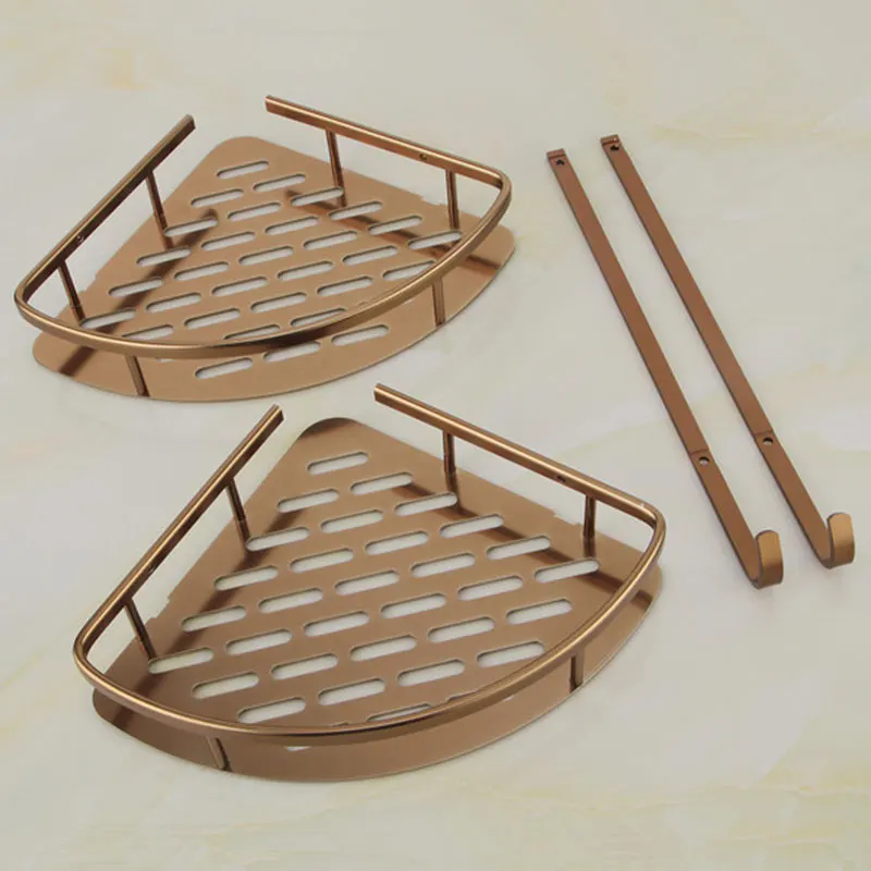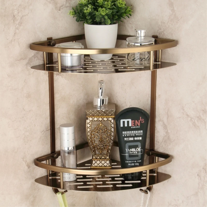 2-х уровневые Ванная комната полки античная латунь Материал с крючок Ванная комната корзина для хранения Настенный Ванная комната угловая полка 9115F