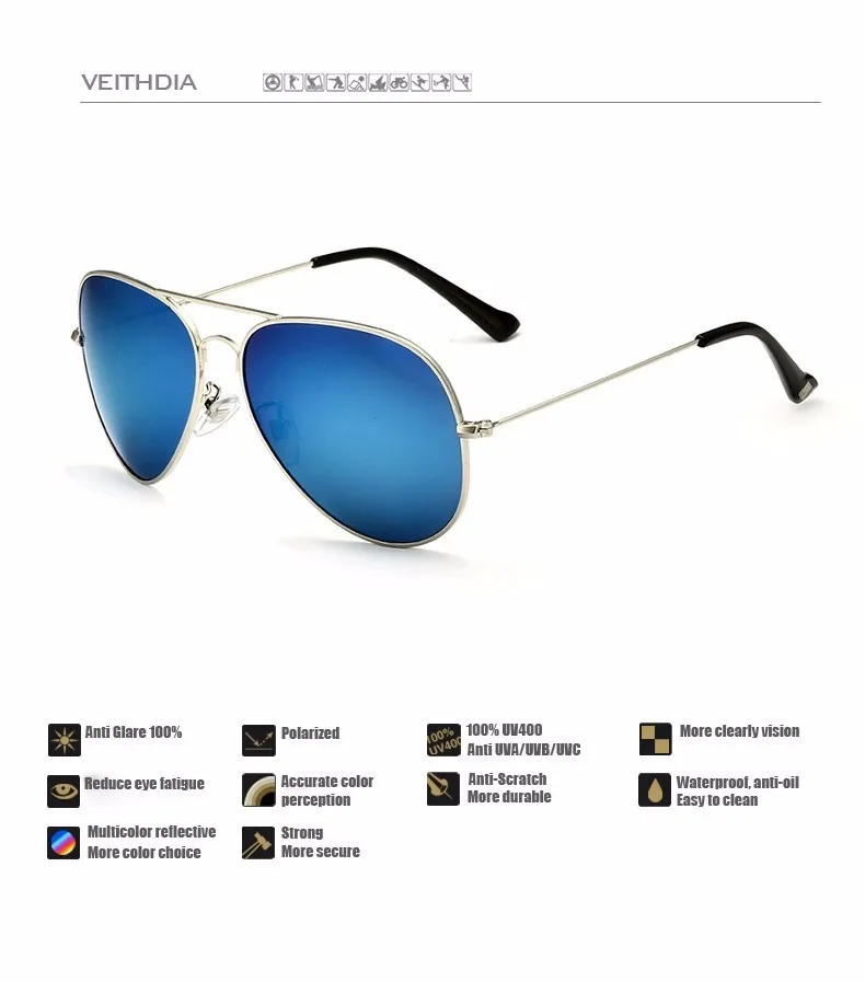 Солнцезащитные очки унисекс VEITHDIA, классические спортивные очки для вождения, с поляризационными зеркальными стеклами, степень защиты UV400, 2019