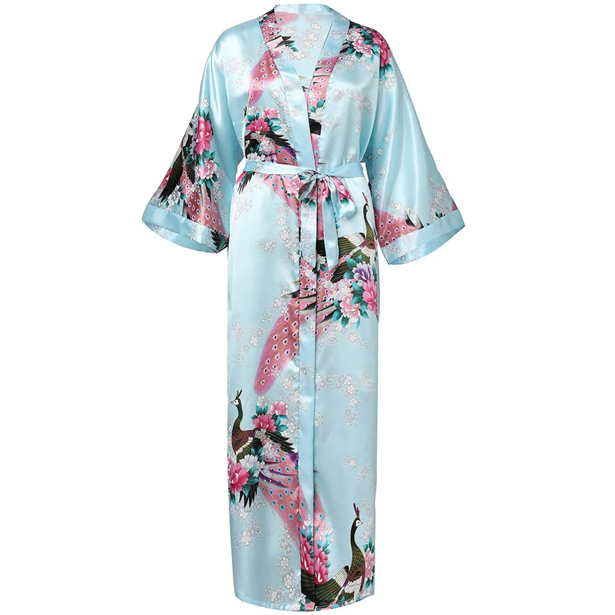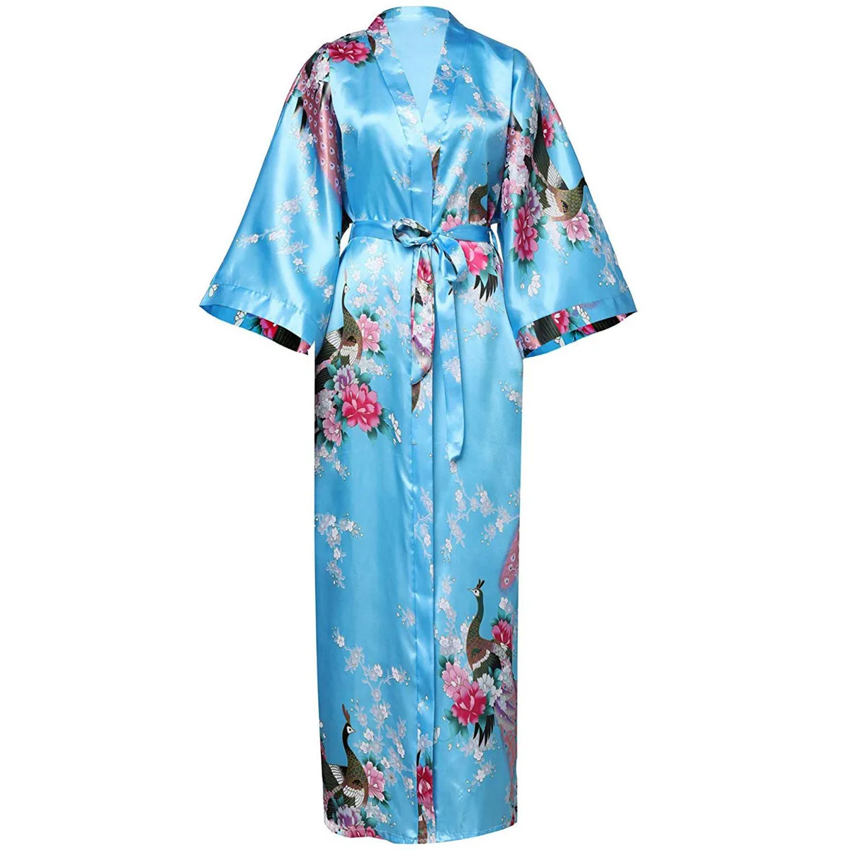 Кимоно женское с цветочным принтом, нижнее белье, длинная повседневная одежда для сна, халат, пикантная атласная Домашняя одежда, нижнее белье Неглиже