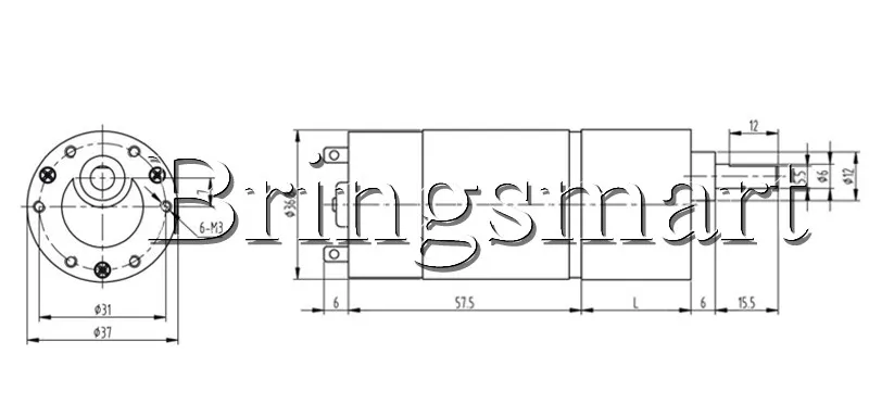 Bringsmart DC мотор с высоким турком, обратная передача 37GB555 6-8...