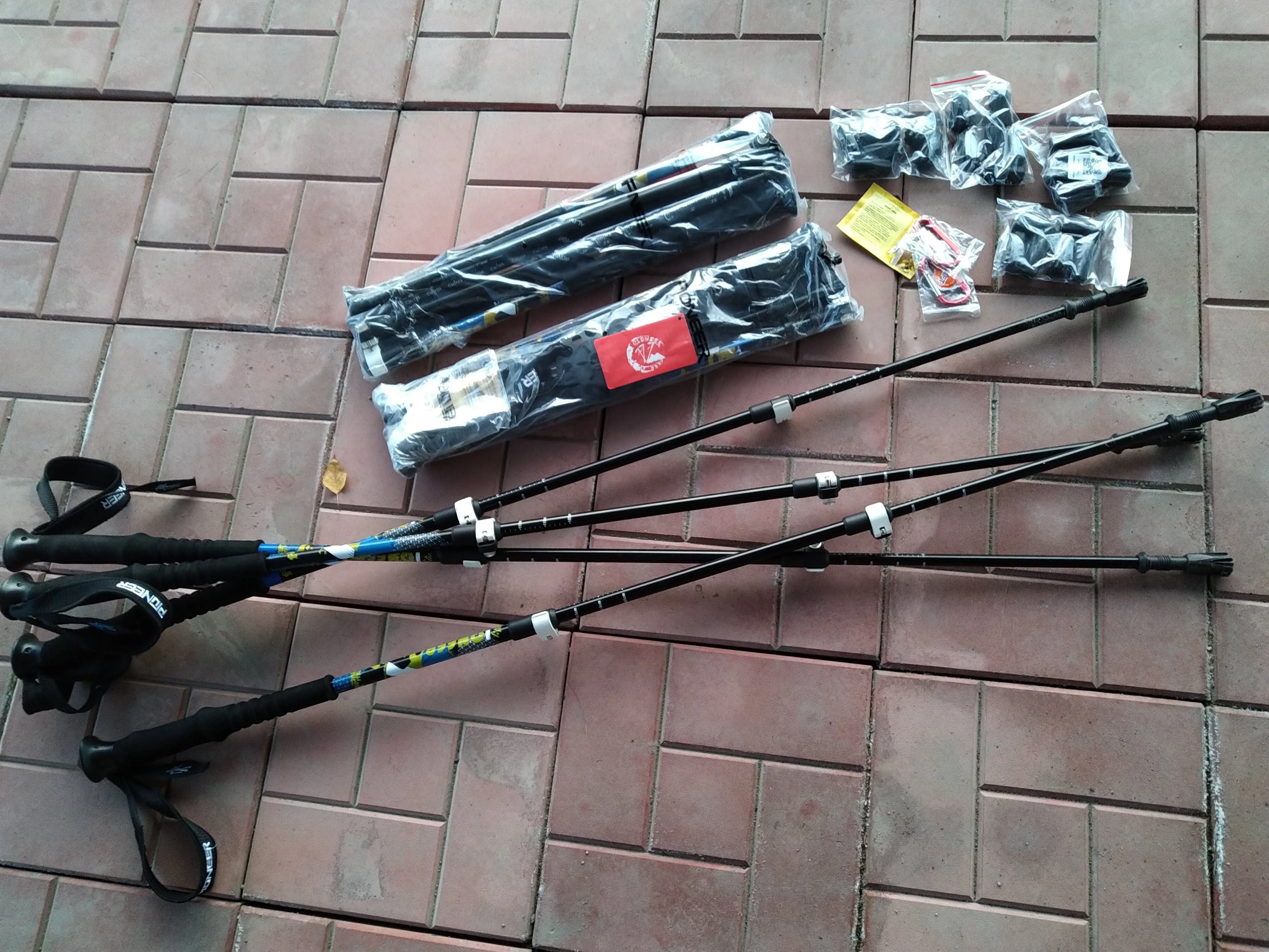 Палки пришли быстро и заботливо упакованными, продавцу спасибо. Все насадки в комплекте. Немного смущает пластиковая часть креплений - хлипкая на вид. Но держит вроде нормально. Проверку "всем весом" в условиях квартиры выдержали; посмотрим, как поведут себя в горах