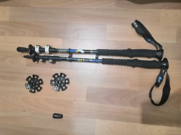 сразу опробовал продукт. сделано тяп-ляп: шпынек на одной ручке торчит - натер мозоль через 4 км пока заметил; край петли обработан плохо - режет руки, только в перчатках. зажимы держат слабо, приходится подкручивать винты постоянно. оступился пару раз - сложились оба колена. так себе фиксация. колпачек на штыре на одной палке слетел сразу. вобщем, на поход выходного дня - норм. что-то серьёзнее - не советую.