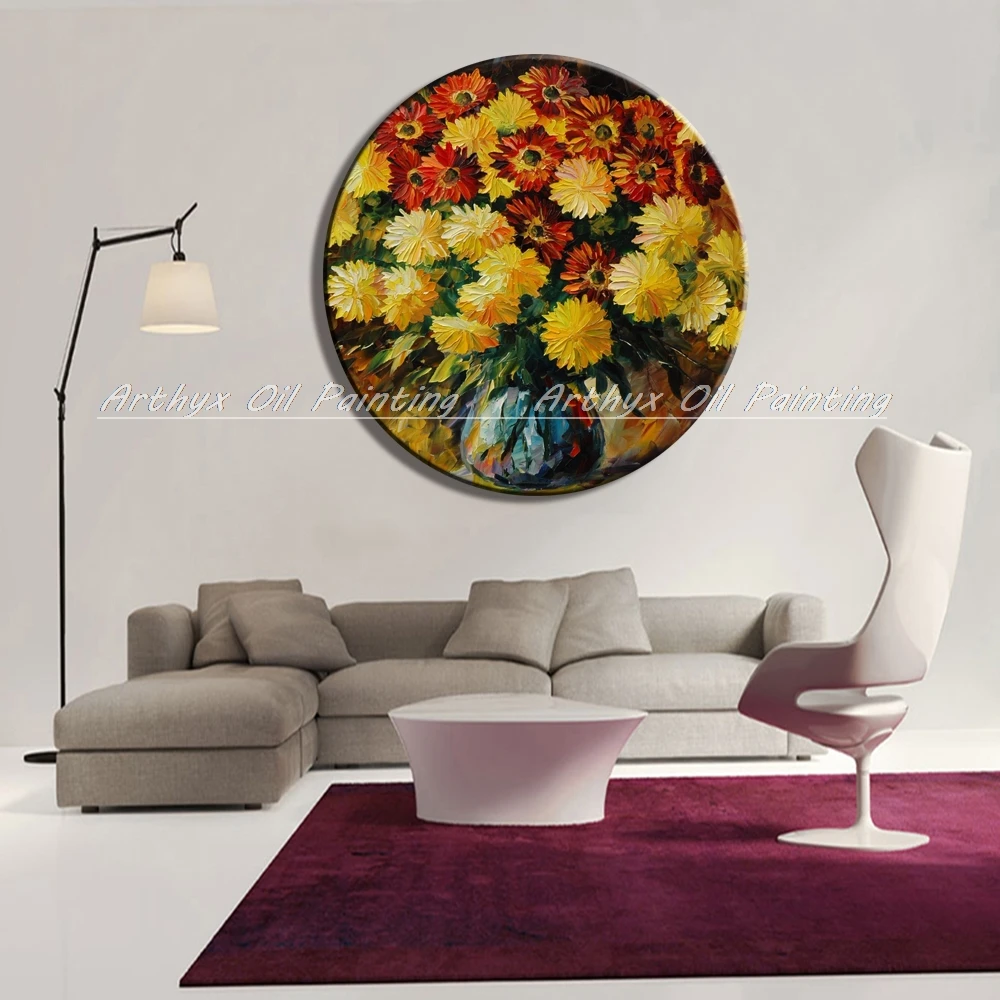 Раундная картина, ручная роспись, палитра, нож, цветок, Масляные картины на холсте, Настенная картина для гостиной, домашний декор с рамкой