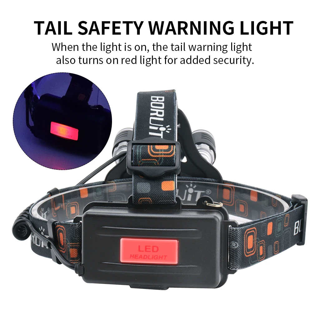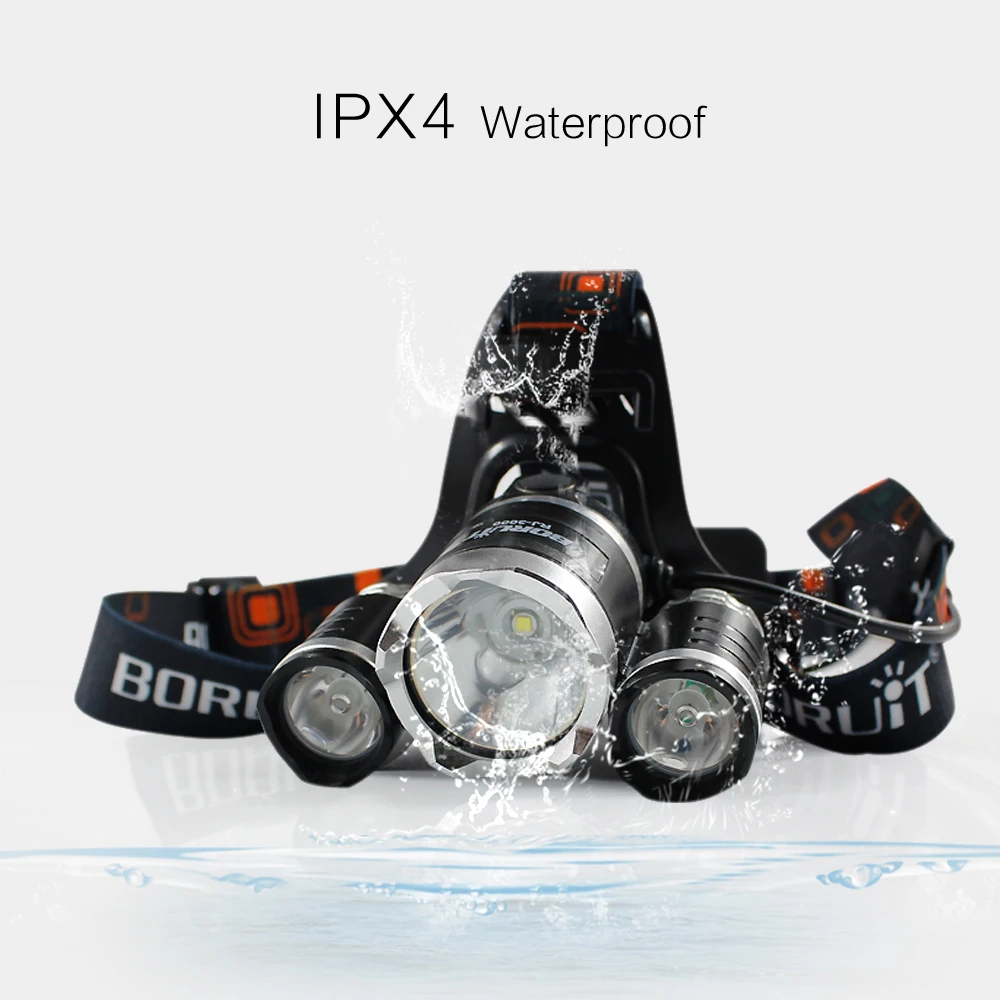 BORUiT RJ-3000 XM-L2 светодиодный налобный фонарь 3000лм 4-режимный водонепроницаемый налобный фонарь USB Перезаряжаемый 18650 налобный фонарь для кемпинга охоты