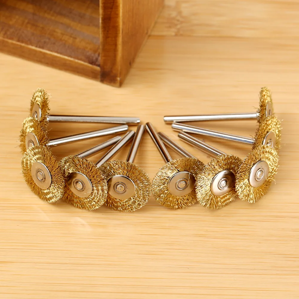 10 шт. 3,17 мм стальная медь щетки колеса провода для шлифовального станка Dremel вращающиеся Инструменты 22 мм Полировальный Инструмент