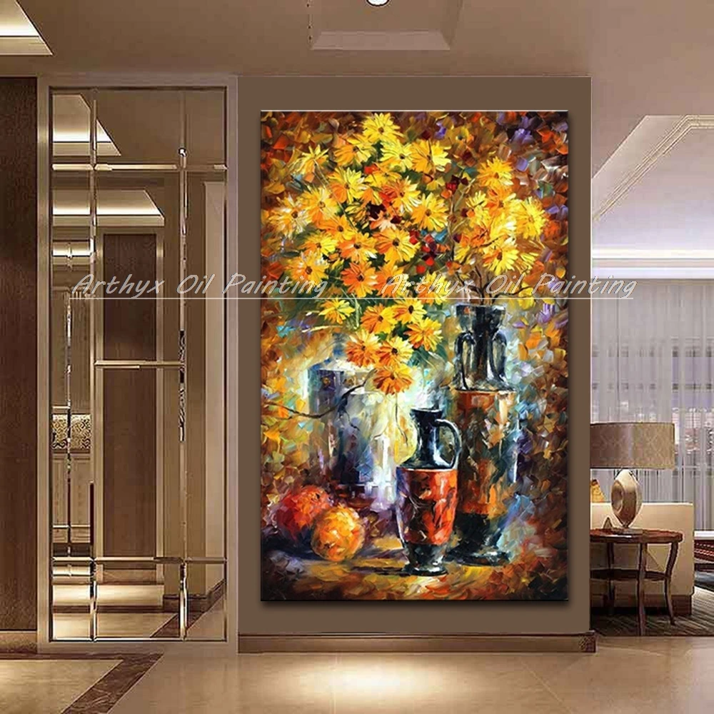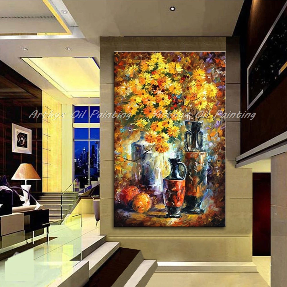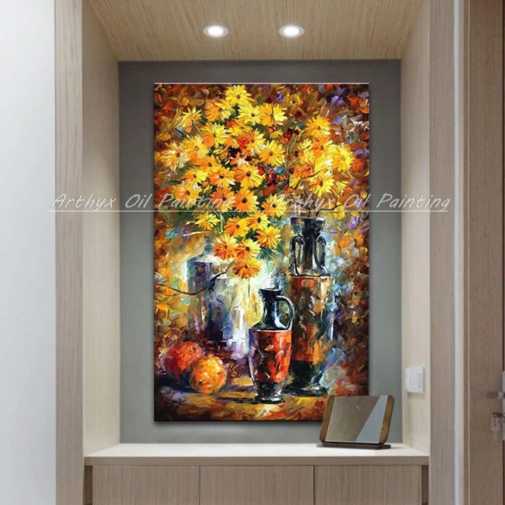 Ручная роспись, Современное абстрактное искусство, Декор, палитра, нож, цветок, картина маслом на холсте, настенное украшение для дома, без рамки, Подарочная картина