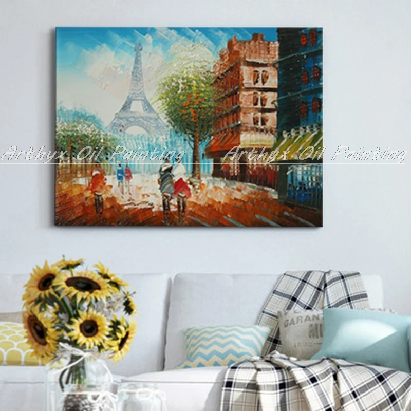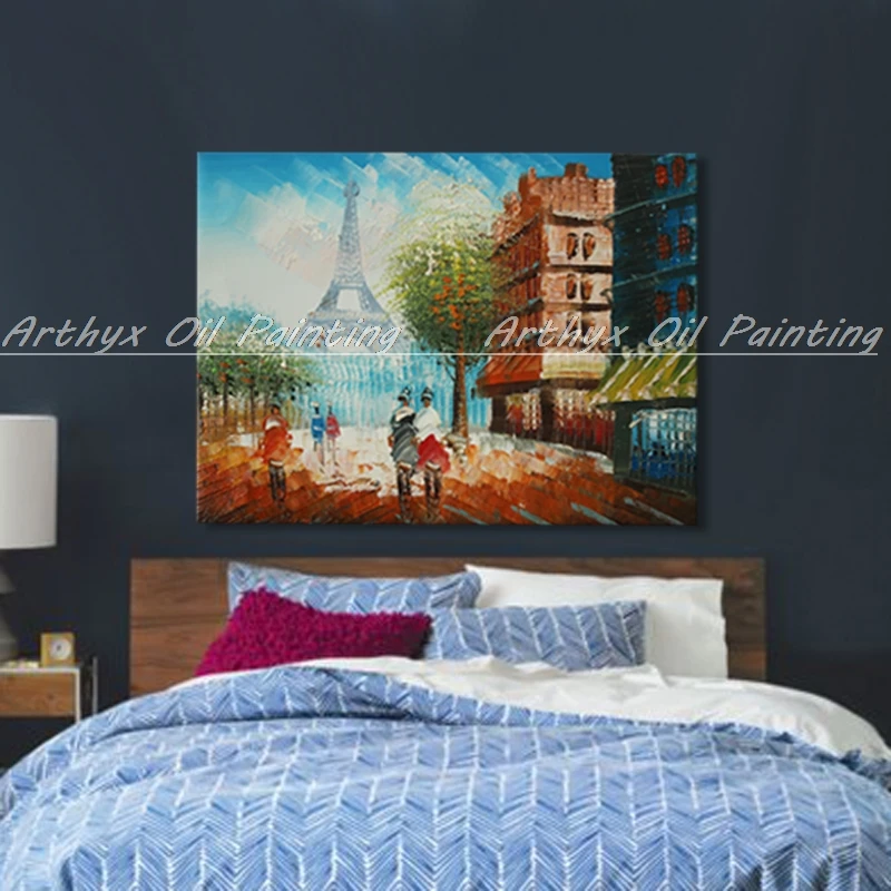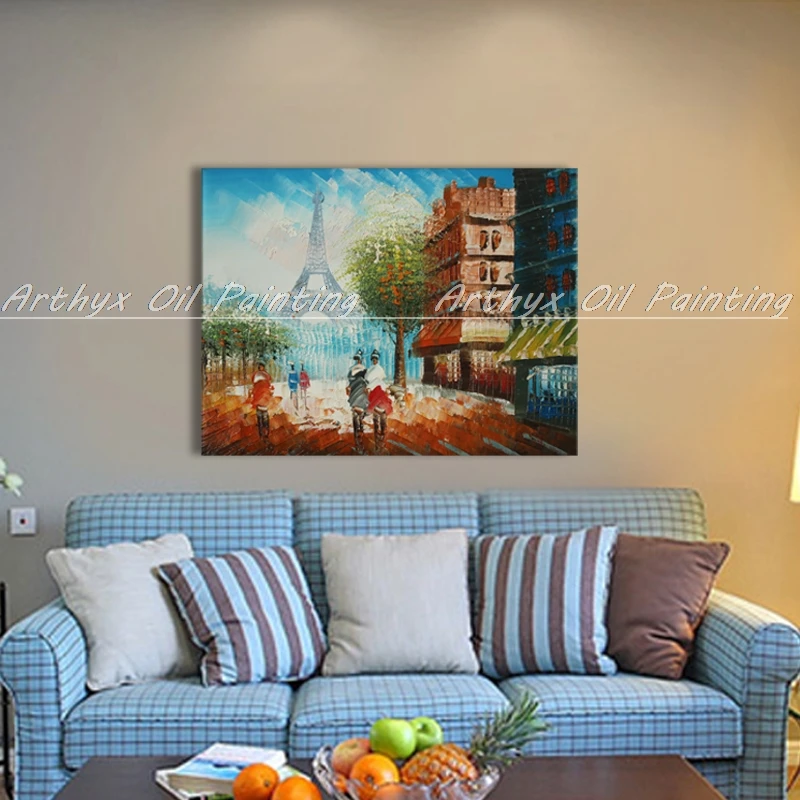 Мастихин ручной работы Arthyx, Романтический город, Париж, Эйфелева башня, пейзаж, картина маслом на холсте для украшения стен гостиной