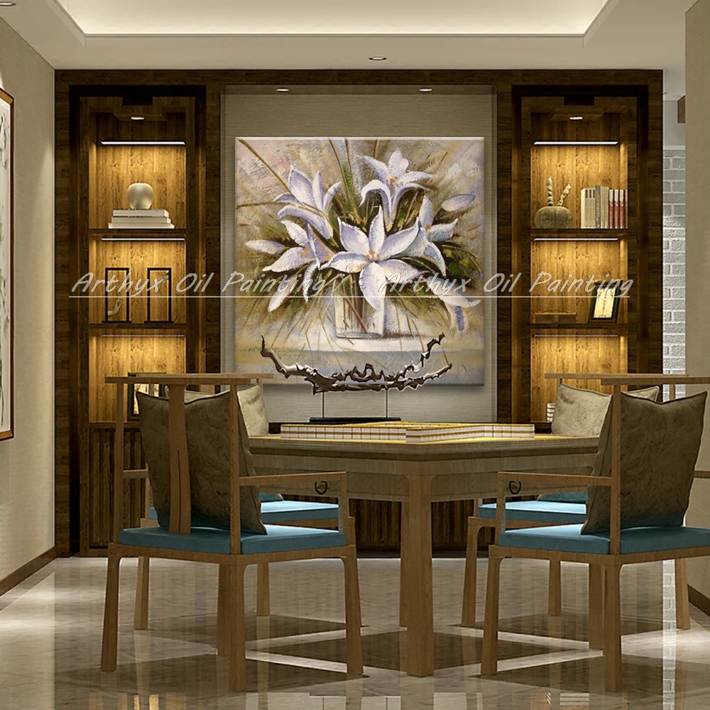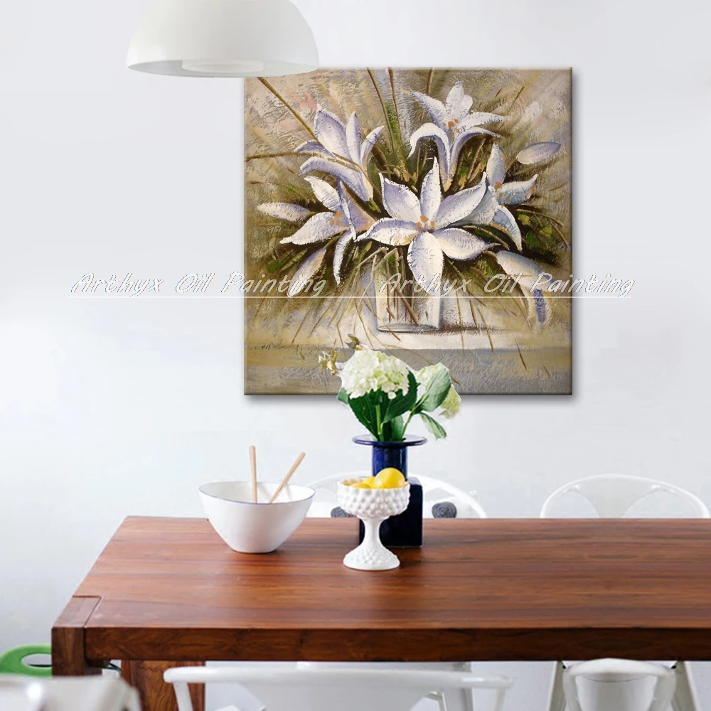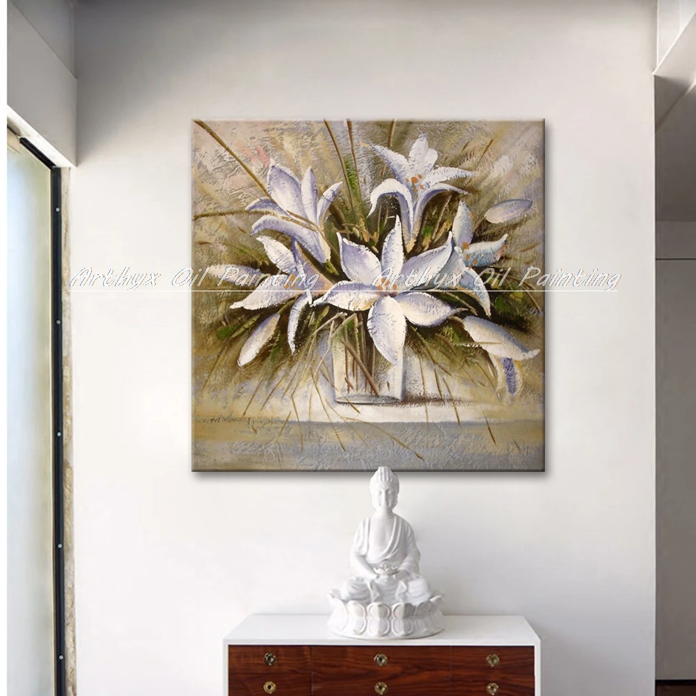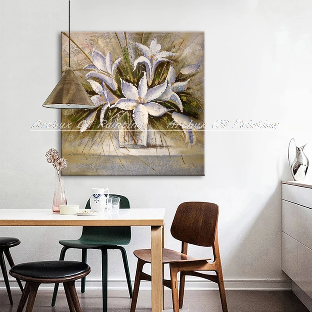 Картина маслом Arthyx, ручная роспись, белые цветы, холст, современный абстрактный плакат, Настенная картина для гостиной, украшение для дома