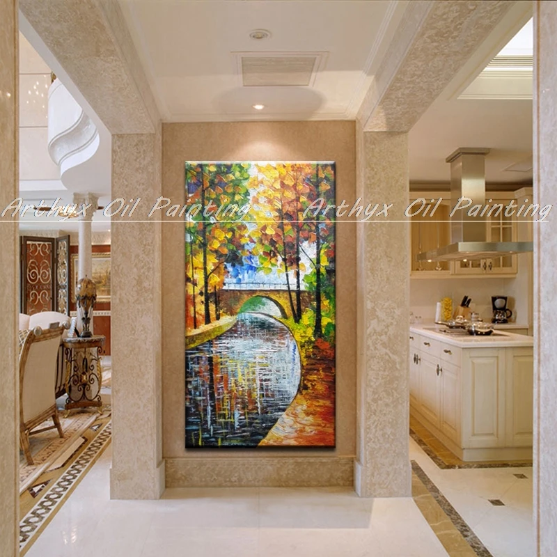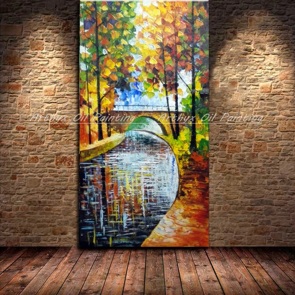 Ручная роспись Маленький мост струящаяся вода палитра нож Дерево картина маслом на холсте настенная художественная картина постер для гостиной домашний декор