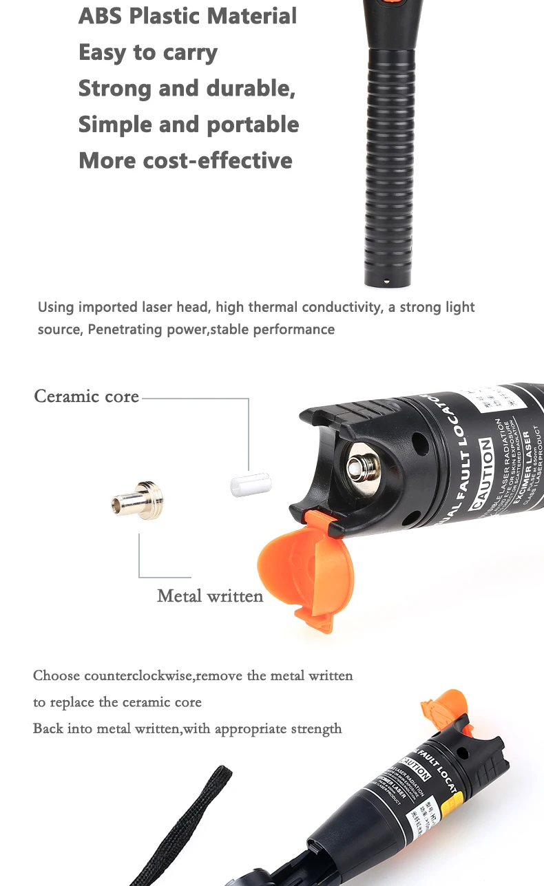 Область применения: Телекоммуникации и техническое обслуживание CATV и техническое обслуживание Кабелей Системы Другие волоконно-оптические проекты Визуальный дефектоскоп 10 мВт используется для измерения в Одномодовых или многомодовых волокнах. Он отличается прочной конструкцией, универсальным разъемом и точным измерением. Особенности: Маленький размер, легко проверить ABS Пластик Материал Высокое качество Ручка Тип Визуальный дефектоскоп Простая идентификация разрыва волокна, изгиб, вы можете защитить слой волокна Точная идентификация волокна Полное механическое определение и оптимизация точки подключения 2 Гц Линт или непрерывный выход