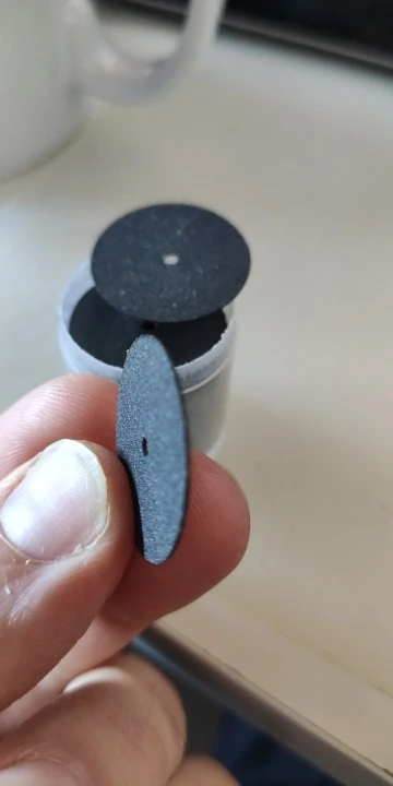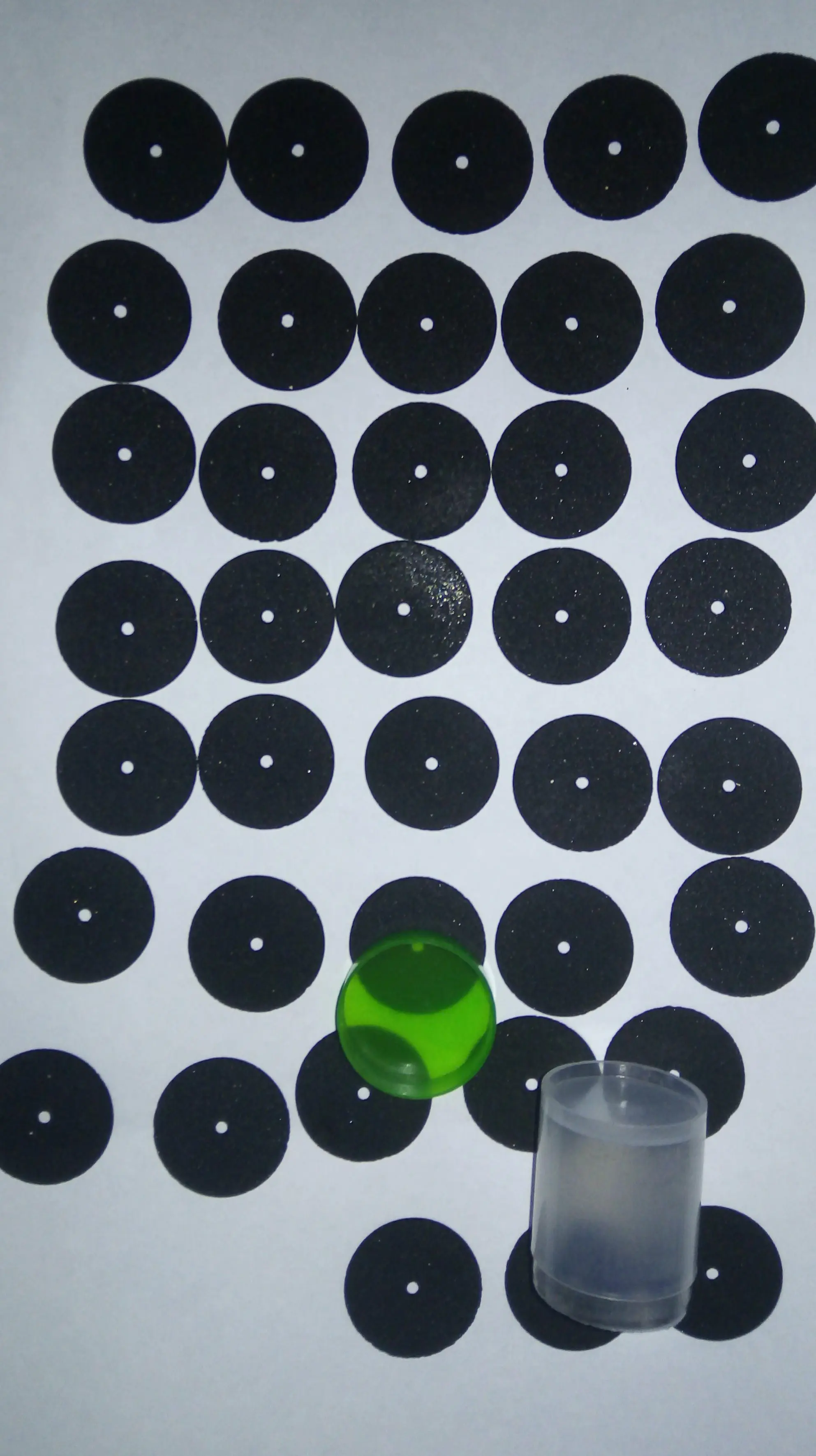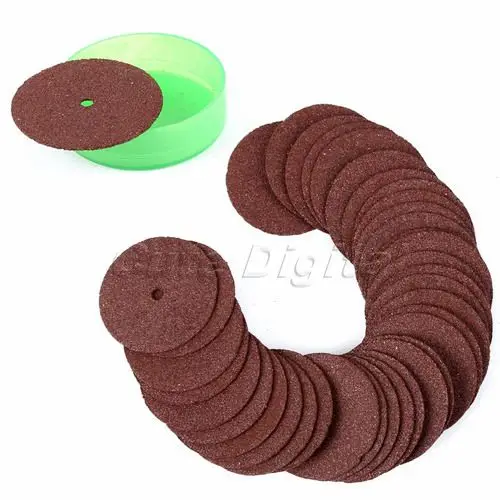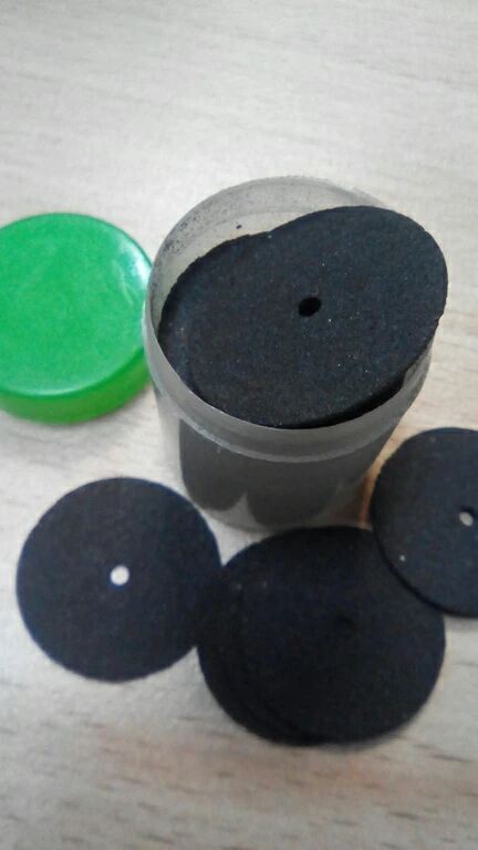 Товар дошел в консолидированной посылке, состоящей из девяти заказов, но посылку задержали на таможне в Китае ровно на месяц. Поэтому остерегайтесь больших сборных посылок! Продавец охотно общался и предлагал варианты решения проблемы. Диски дошли в целости и сохранности, и в количестве 39 штук! Диаметр 24мм. Толщину замерил микрометром - 0,7мм, но допускаю, что толщина основы в пределах 0,5-0,6мм. Диски не армированные, поэтому могут раскалываться при работе. Черный абразив должен состоять из карбида кремния и предназначен для более точных работ по стеклу, пластику, алюминию. Коричневые диски должны состоять из электрокорунда нормального - для более грубых работ с переменной нагрузкой из-за большей вязкости материала. Хорошие диски для точного и тонкого реза. Для грубого реза металла лучше брать армированные диски.
