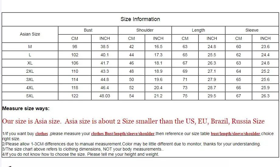 1/Если вы хотите купитьОдежда, Пожалуйста, измерьтеОдежда; Бюст; Длина; Рукав; Плечо, Затем ознакомьтесь с нашей таблицей размеровБюст/длина/рукав/плечо, Выберите правильный размер.