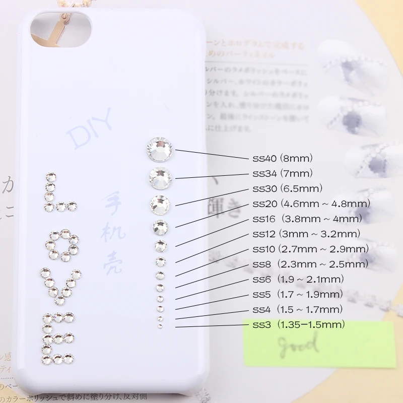 Количествоss3-ss20(1440pcs/lot),ss30-ss34(288pcs/lot),ss40(144pcs/lot)