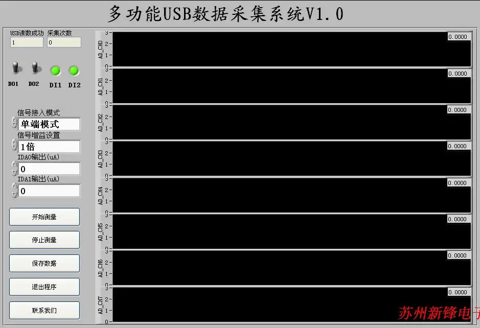 Потому что данная карта является 24-битный Высокоточный AD и usb-чип не имеет буфера, а также в режиме реального времени для рисования по кривой, фактическая частота дискретизации является относительно низкой, подходит для медленного сбора, Все входные и выходные каналы собираются одновременно, 0-100 в секунду, в соответствии с конфигурацией компьютера.