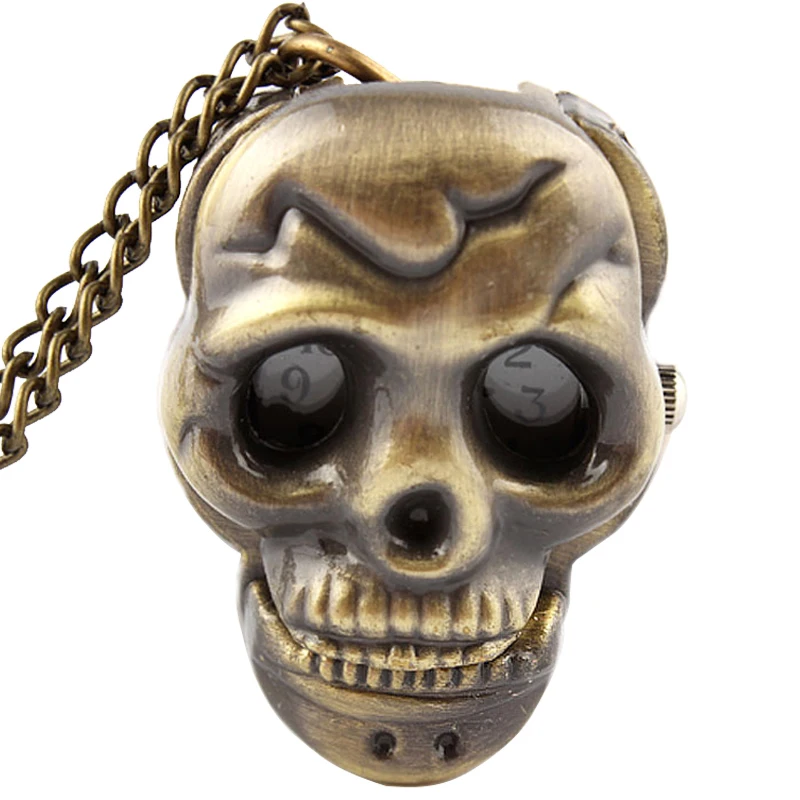 Старинный череп Кошмар перед Рождеством кварцевые карманные часы ожерелье цепь Кулон Ретро Мужские бронзовые старинные карманные часы