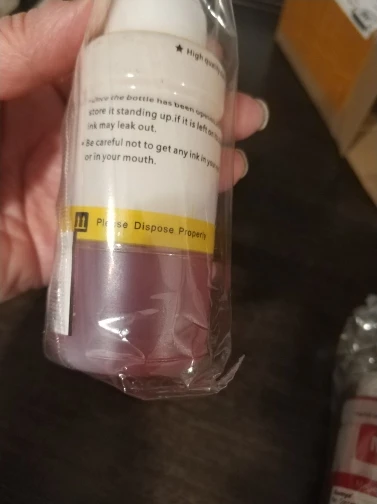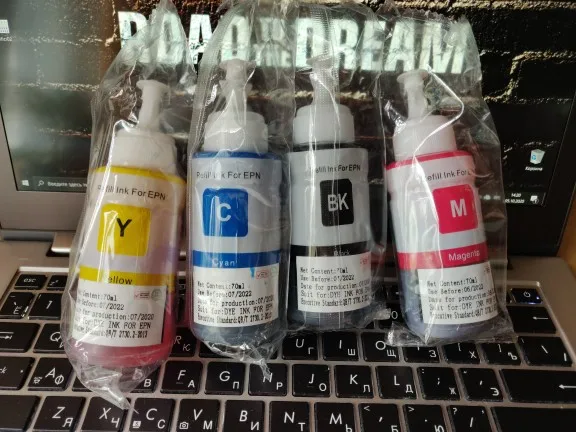 Заказывали на цветной принтер Epson L132. Бутылочки пришли за 42 дня. Упаковано всё супер. Коробка была помятая(спасибо нашей почте). Но все бутылечки не помялись, продавец очень хорошо упаковал. Продавец молодец! Всем рекомендую!
