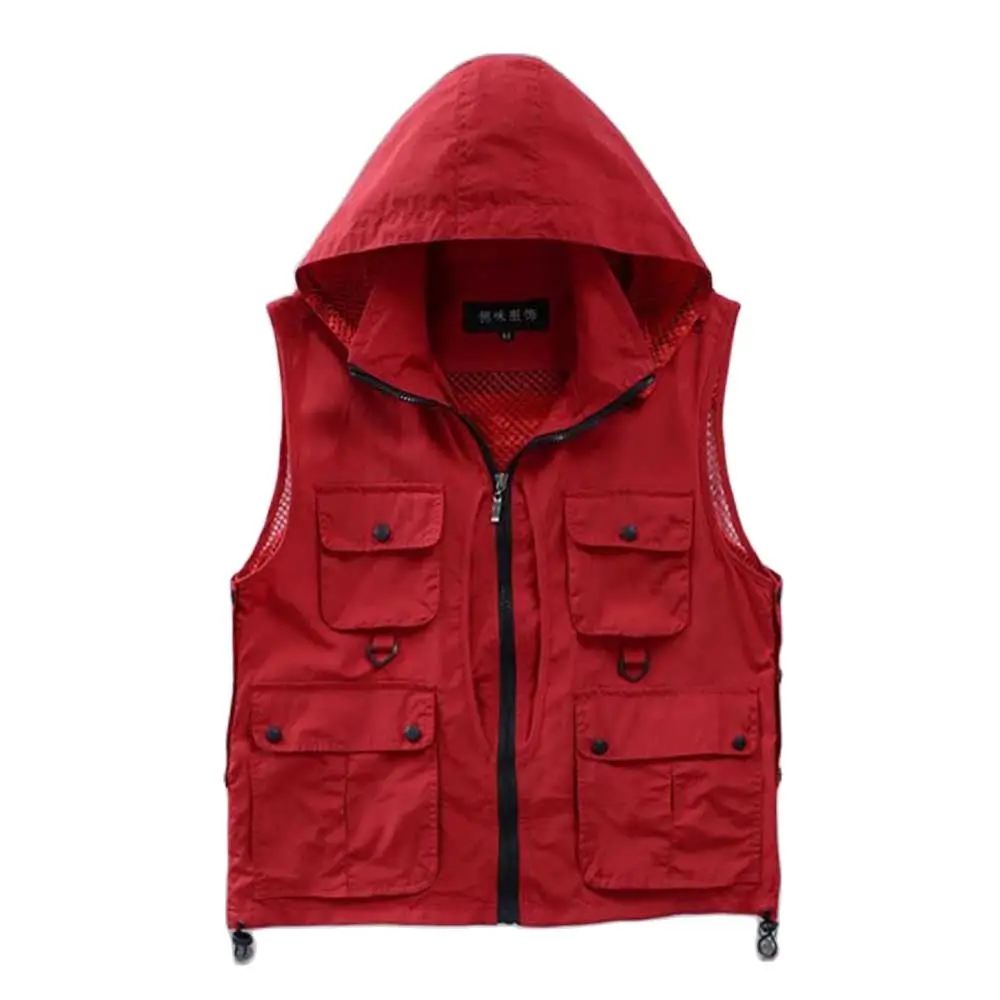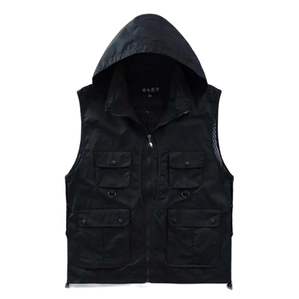 Многофункциональный мужской жилет фотографа с капюшоном, водонепроницаемый сетчатый жилет, мужской жилет, куртки без рукавов с большими карманами, весенне-летняя одежда