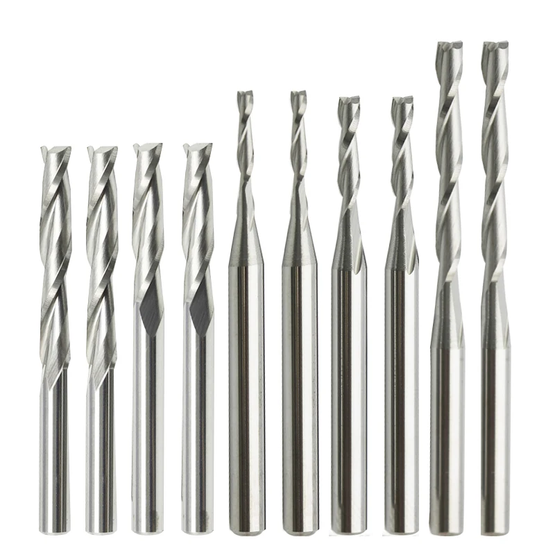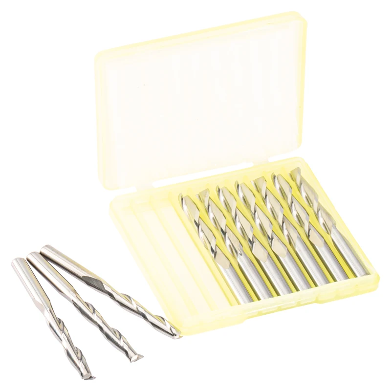 Концевая фреза с двумя канавками, хвостовик 3,175 мм, 4 мм, 5 мм, 6 мм, спиральный Фрезерный резак с 2 канавками, фреза с ЧПУ для гравировки по дереву, карбидная концевая фреза, 10 шт.