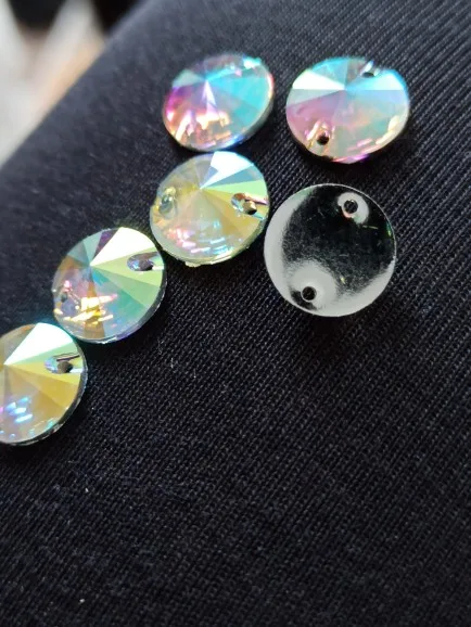 ФормаПришивка камней: Rivoli круглая, плоская спинка (2 отверстия для шитья)