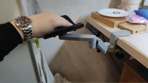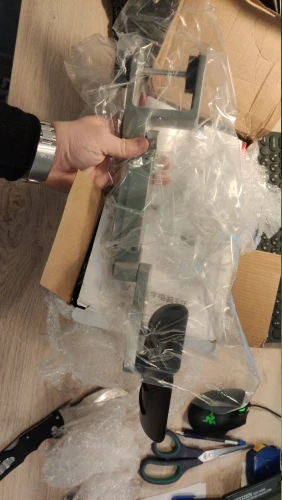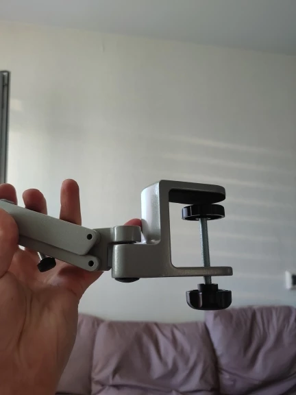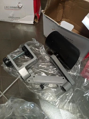 Доставка чуть больше 2х недель. Коробка приехала в рот выигранная... Но устройство целое. В реале оказалось меньше чем представлял себе. Очень подвижная штуковина, фиксируется только высота подъёма, а всё остальное живёт своей жизнью. Думал все узлы фиксируются в заданном положении, ан нет... Посмотрим как в работе себя покажет, по идее не будет сковывать движения руки, для помощи в гравировке и других подобных работах думаю сойдёт, чтобы рука не затекала и была не на весу для жёсткости и точности движений. Прижимная шайба вообще ни как не зафиксирована на резьбе, но может это и к лучшему, заменить если что не составит труда, и без неё можно на более толстый стол прикрепить. Конструкция прочная, но облакачиваться на неё не советую. А вообще должна быть удобная приспособа. Поюзаю, дополню отзыв.