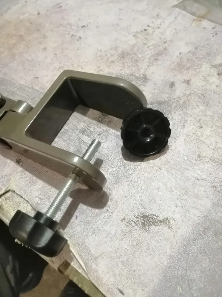 В целом товаром я доволен, но есть и серьезный недостаток. Прижимная пятка никак не закреплена на резьбовом штоке. Более того, на конце штока не предусмотрено никакое крепление пятки. И сама пятка неправильная - она скорее похожа на рукоятку для вращения штока. В таком виде она долго не проживет, необходимо будет сделать новую и металла, наклеив на нее тонкую резинку для устойчивости зажима. Сейчас из-за этого недостатка я не могу полностью опереться на такой подлокотник, потому что пятка съезжает со своего места. Физически по ощущениям, этот подлокотник - то что мне надо! Так получилось, что у меня повреждена левая рука, и любые манипуляции ею причиняют мне невыносимую боль. При использовании этого подлокотника боли почти нет.