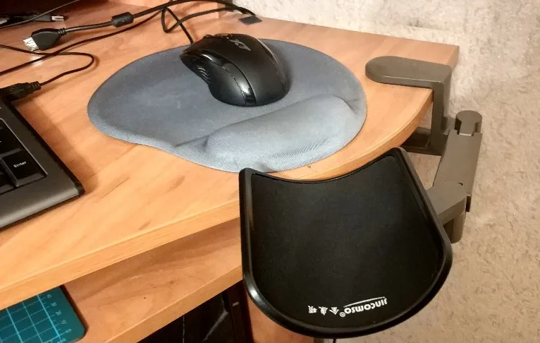 Очень хорошая и полезная поддержка запястья. Я рекомендую тем, кто долгое время сидит перед компьютером.