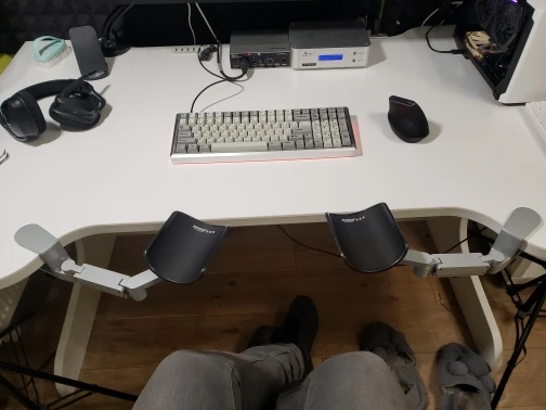 Не хватит слов, чтобы описать, насколько они удобные. Если описать вкратце - после получения посылки, я полностью открутил подлокотники на своем игровом кресле. Всё потому что подлокотники кресла всегда буду то слишком широко, то слишком узко, то слишком близко к столу, то , наоборот, длины не хватает А тут прям при любом сценарии безумно удобно и подлокотники движутся за локтями. Выполнено на уровне, ничего не скрипит, ходят части подлокотников очень плавно. Высоту можно настроить, чего не встретишь в аналогах дешевле Была слегка помята упаковка, но изделие от этого никак не пострадало