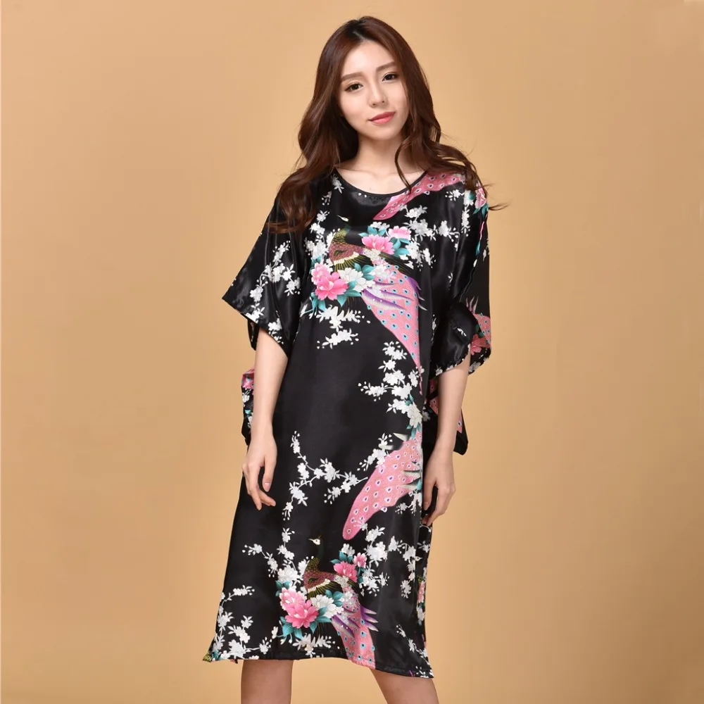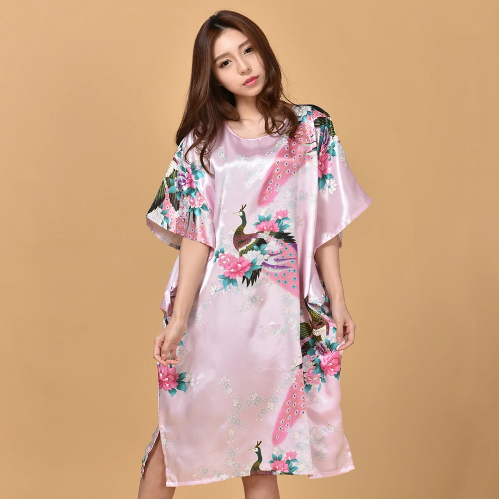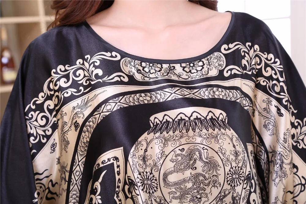 Размера плюс ночная рубашка, женская летняя ночной халат женская сексуальная ночная рубашка, Шелковый искусственный шелк, свободный банный халат, домашнее платье