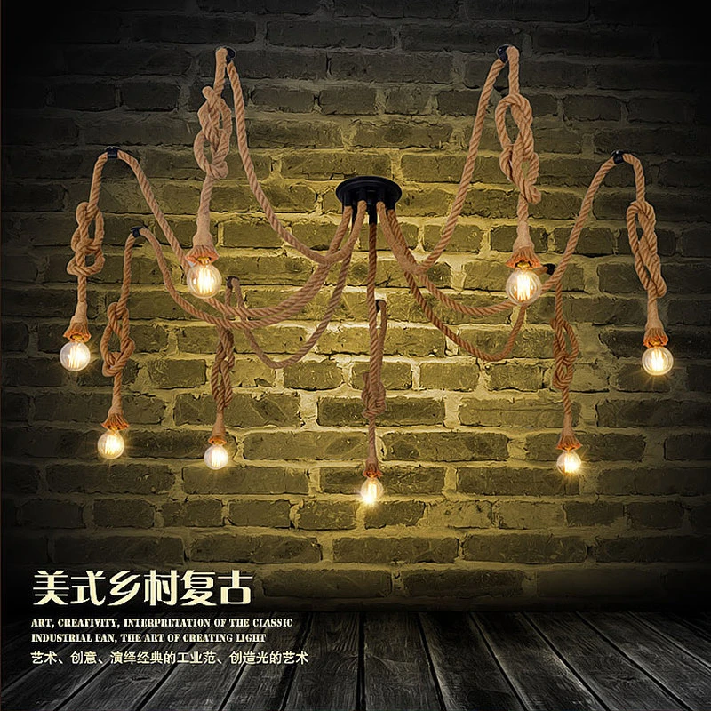 Люстра из пеньковой веревки, Античная классическая Регулируемая потолочная лампа сделай сам, светильник-паук, Ретро лампа Эдисона, лампа педанта для дома icon star icon star icon star icon star icon star