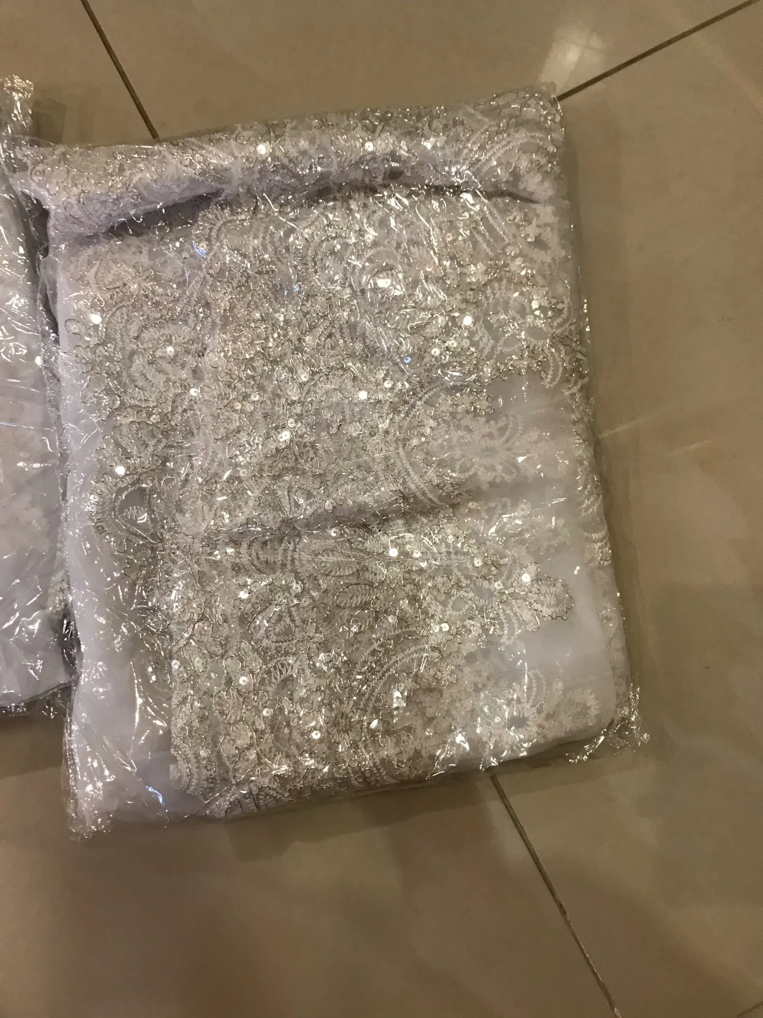 Настоящие фотографии 2018 белаяСлоновая свадебная вуаль 3 м с гребнем, кружевные бусины, мантилла, свадебные аксессуары Veu De Noiva MD47
