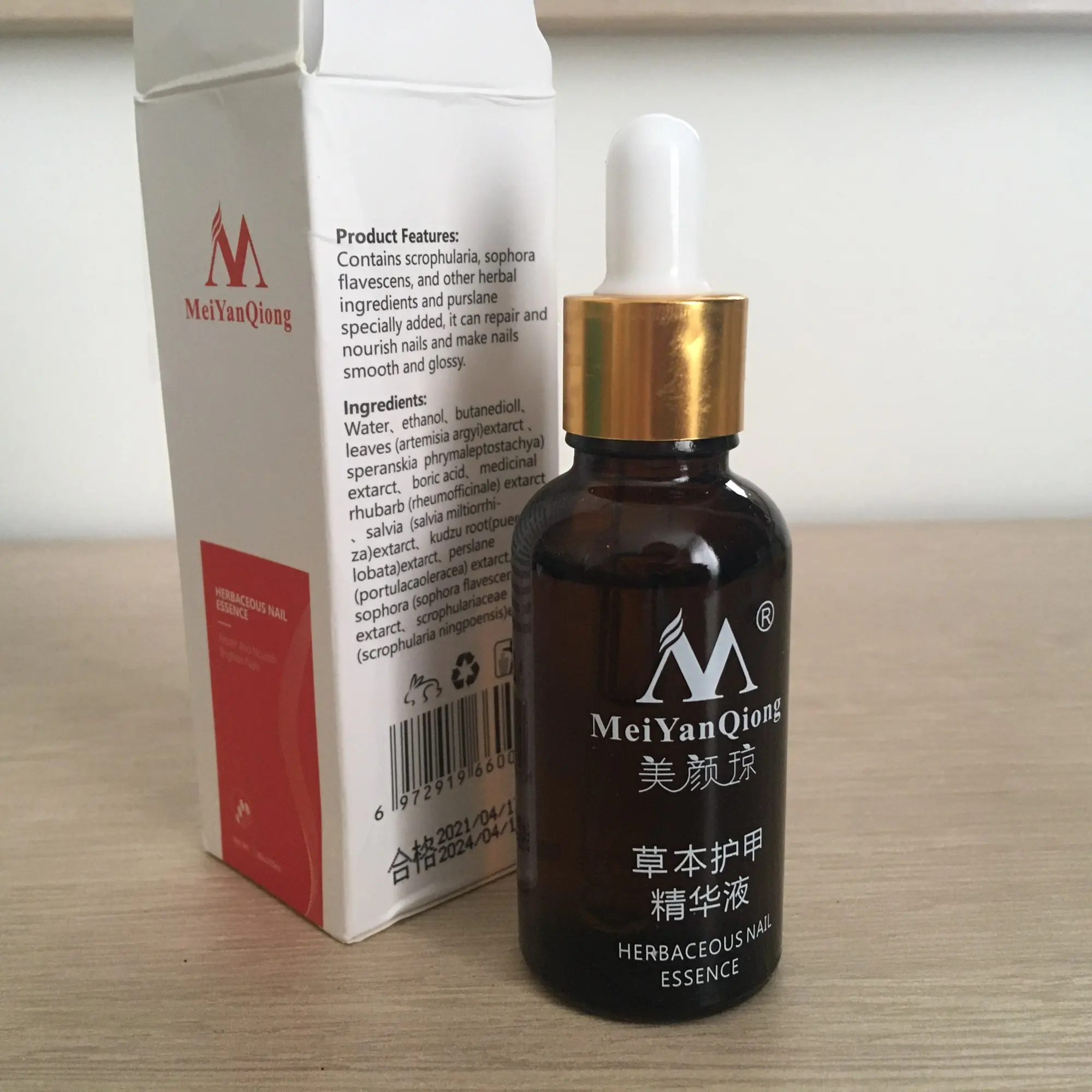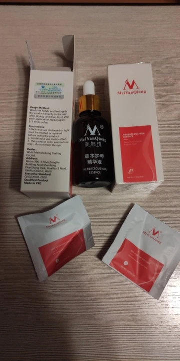 Эфектная эссенция по уходу за ногтевой пластиной. Бренд - MeiYanQiong, нетто - 30 гр. Хорошо лечит грибок, делает ноготь более гладким. Доставка быстрая, отличные сроки годности. Средство имеет хороший запах, выполнено в виде пипетки, консистенция маслянистая.