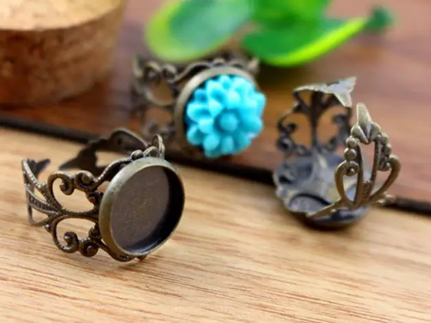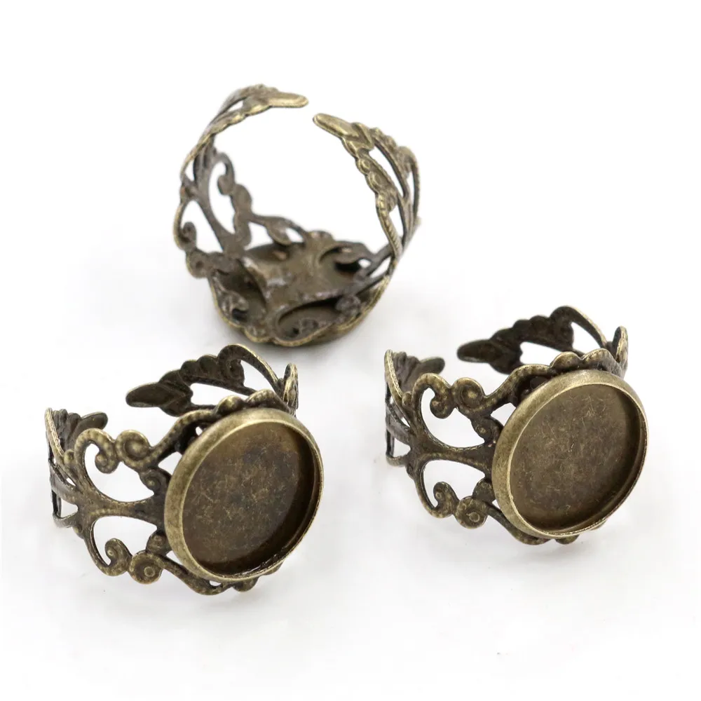 12 мм 10 шт античное бронзовое покрытие регулируемое латунное кольцо настройки пустойоснование, подходит 12 мм Стеклянные Кабошоны, кнопки; Кольцевые оправы-J2-08