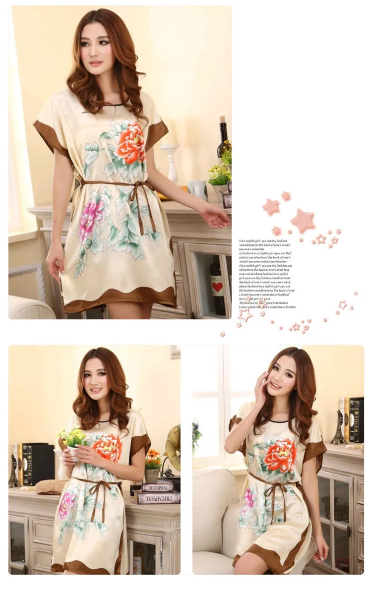 Летняя модная женская ночная рубашка, шелковая атласная Корейская Пижама с короткими рукавами, женская ночная рубашка с этническим цветочным узором, повседневный спортивный костюм