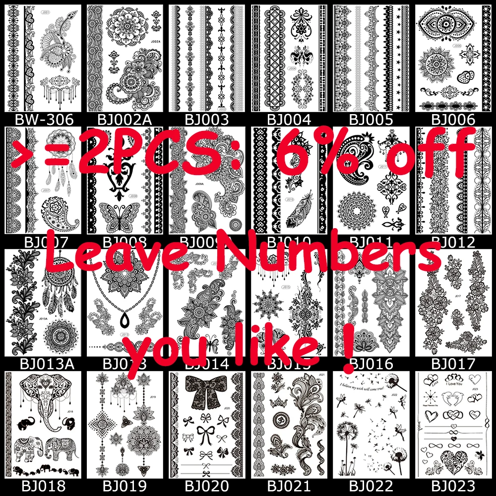 Henna Tattoo Sticker FeaturesFake / Harajuku / Waterproof / Sweatproof / Non-toxic / Unscented