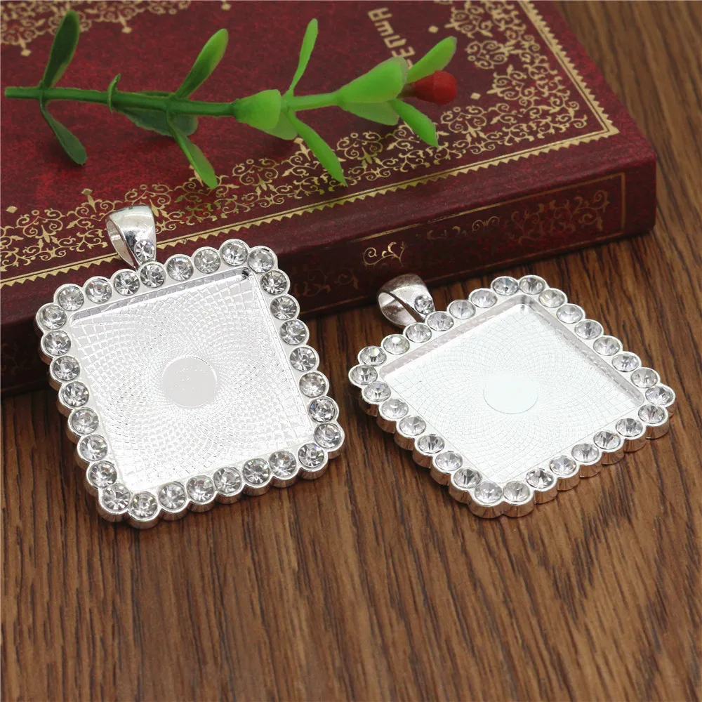 5 шт. 25 мм внутренний размер яркий посеребренный прозрачный и синий Стразы квадратный стиль Камея Кабошон основа подвеска
