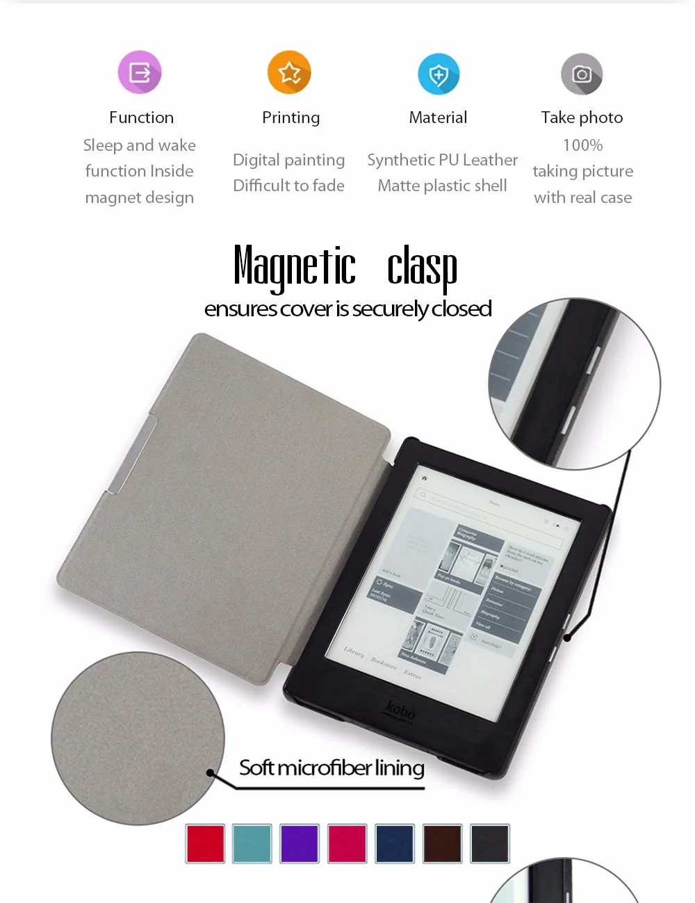 Чехол-книжка для Kobo Glo HD, кожа, 6 дюймов, с функцией автоматического пробуждения и сна