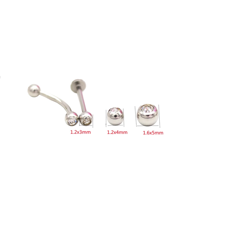 Кристально чистые драгоценные камни шар 3 мм 4 мм 6 м губы Козелка шпильки уха спираль губная планка 1,2 мм 14 г Винт Брови Модные Украшения для тела