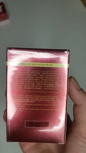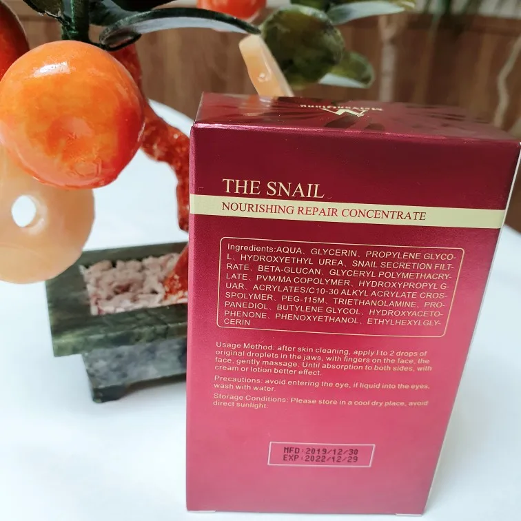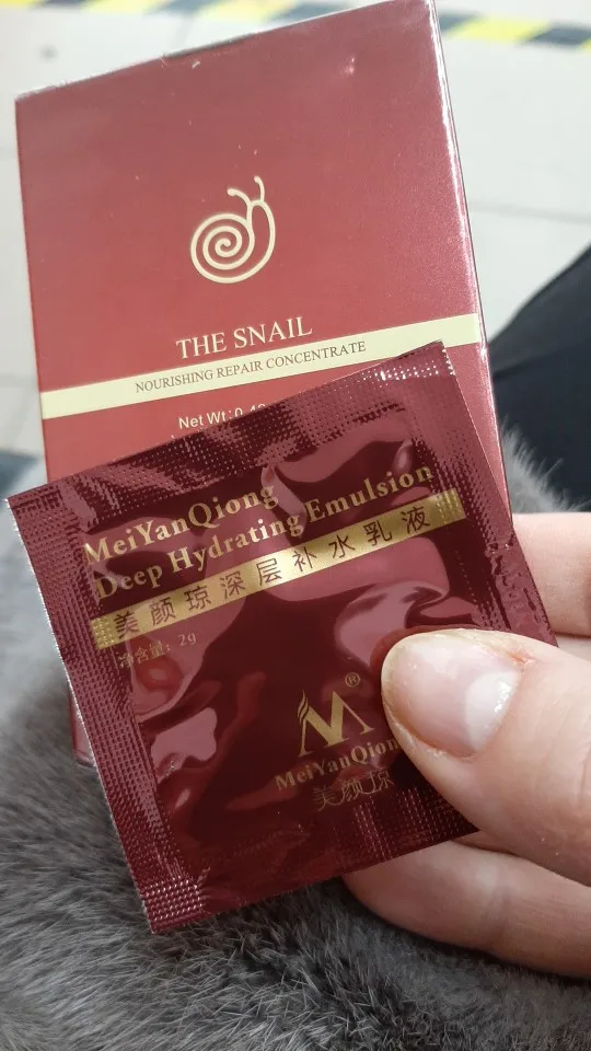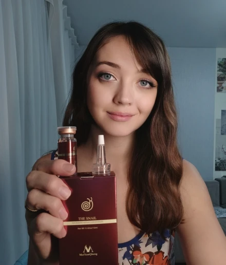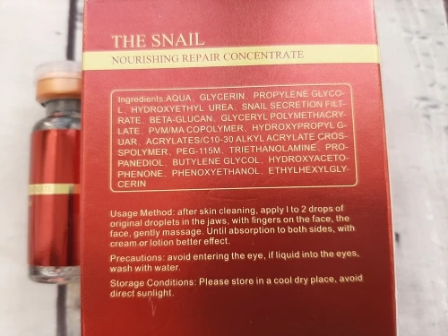 Доставка в Беларусь три недели. Трек частично отслеживается. Пришла в красивой коробочке красного цвета,запаяна в слюду. Объем содержимого 12 мл. Продукт обладает омолаживающим, улучшающим цвет лица эффектом, разглаживает мелкие мимические морщины. Ингредиенты: муцин улитки, глицерин, бета-глюкан. Срок годности три года. Обладает приятным ароматом, консистенция достаточно густая гелеобразная. Мгновенно впитывается в кожу, насыщая ее влагой. Кожа нежная увлаженная, спустя три недели, мелкие мимические морщины визуально менее заметны.