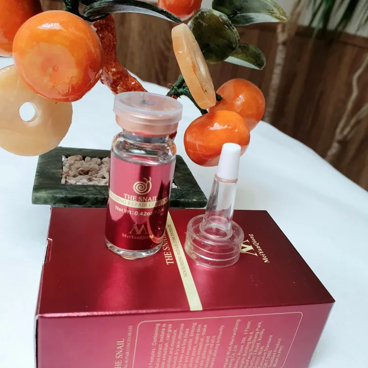 Сыворотка для лица MeiYanQiong. Вы не узнаете свою кожу. В составе имеет слизь улитки. Если кто не знает, сыворотки содержат много активных компонентов, которые быстро впитываются в кожу и восстанавливают её изнутри. Сверху, при необходимости, можно наносить дополнительно крем. Использовать сыворотку желательно утром и вечером, после очищения кожи. Кожа преображается. Поры сужаются, кожа становится более свежей, гладкой, молодой. Жаль что сыворотки нельзя использовать постоянно, так как они содержат слишком активные вещества. После использования одного флакона (курс), нужно делать перерыв 2-3 месяца. Товар отличный, рекомендую.
