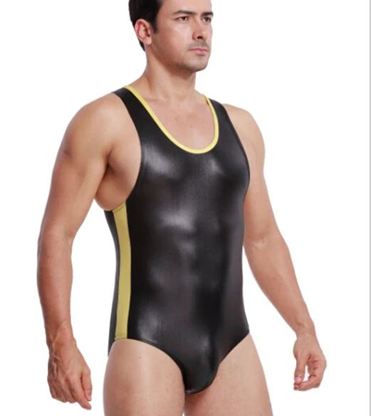 Мужское боди из искусственной кожи, Борцовский костюм, мужской сексуальный корректирующий костюм, лоскутное боди для мужчин, спортивное трико для тренировок, V54