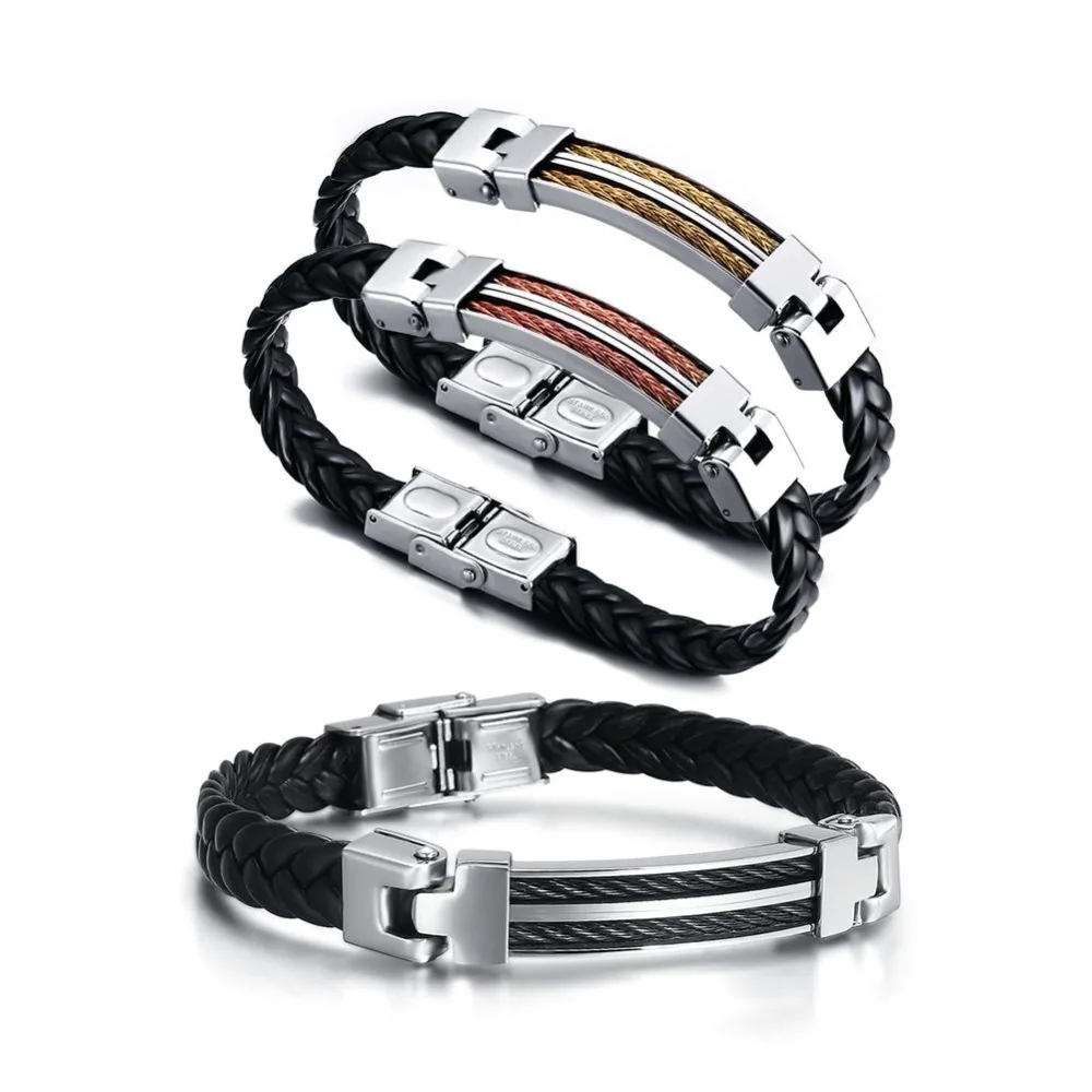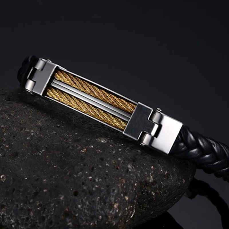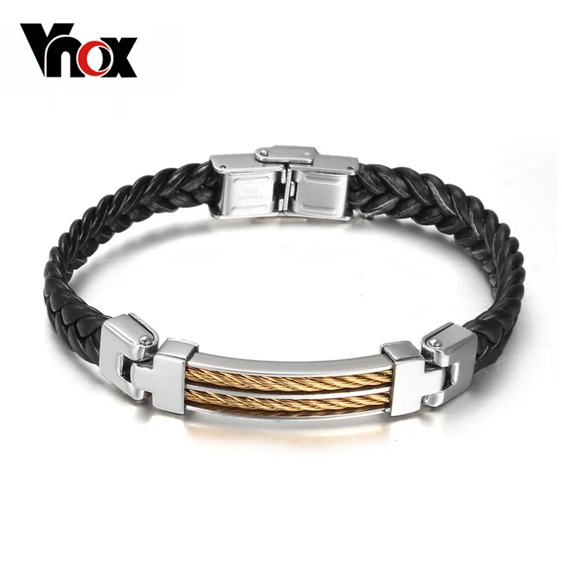 Vnox модные черные Кожаные браслеты Для мужчин Jewelry Проволока из нержавеющей стали Лидер продаж Aliexpress панк подарок