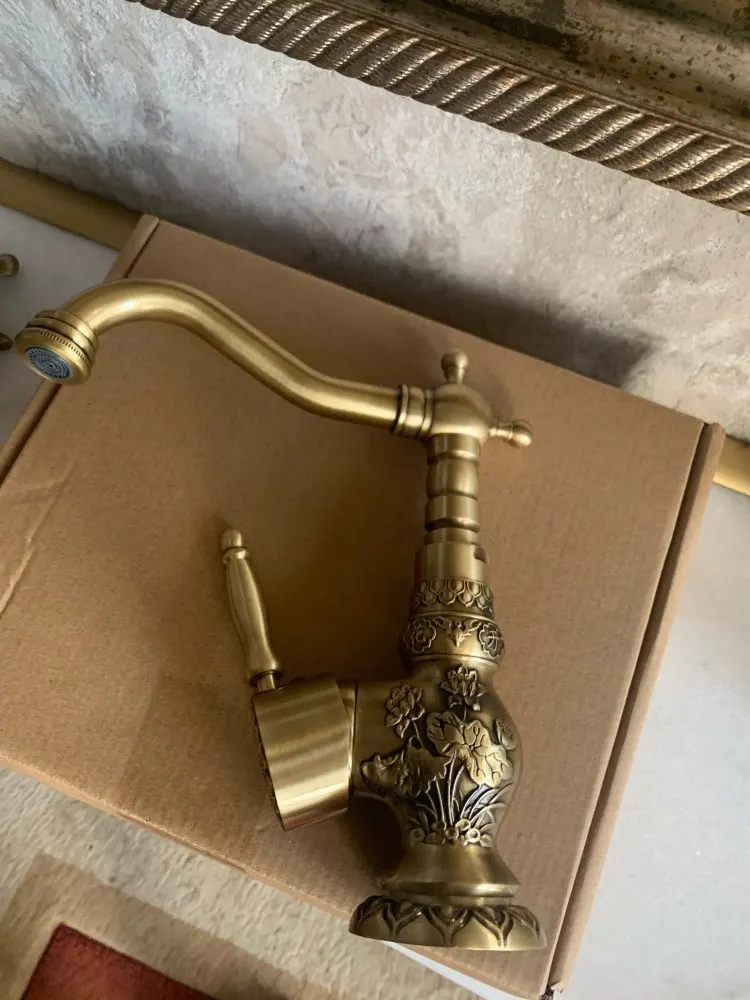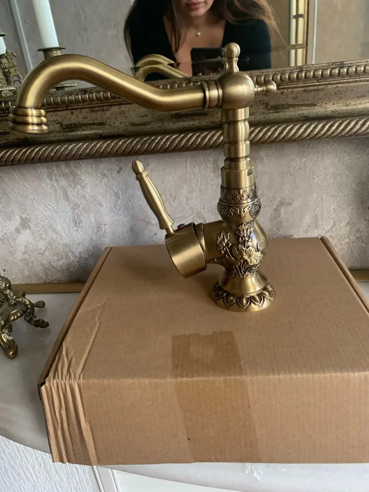 Смесители для раковины, античная латунь, смеситель для ванной комнаты, кран для умывальника, поворотная ручка, кран для горячей и холодной воды AL-9966F