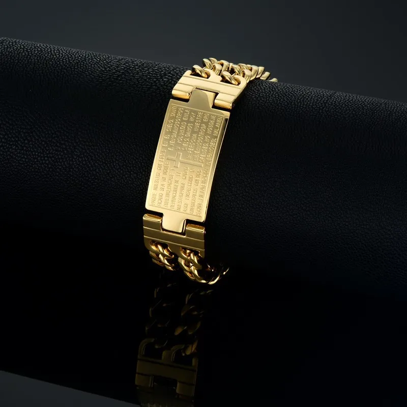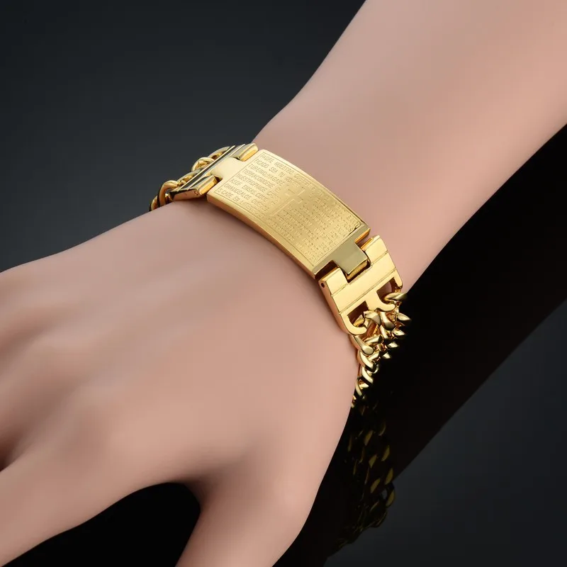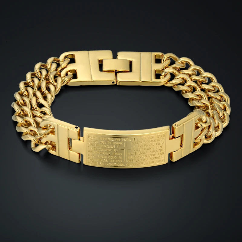 Мужской браслет с Иисусом, христианство, Библия, испанский браслет, Уникальный золотой крест, толстая цепь, ID браслет, золотой цвет, мужские ювелирные изделия