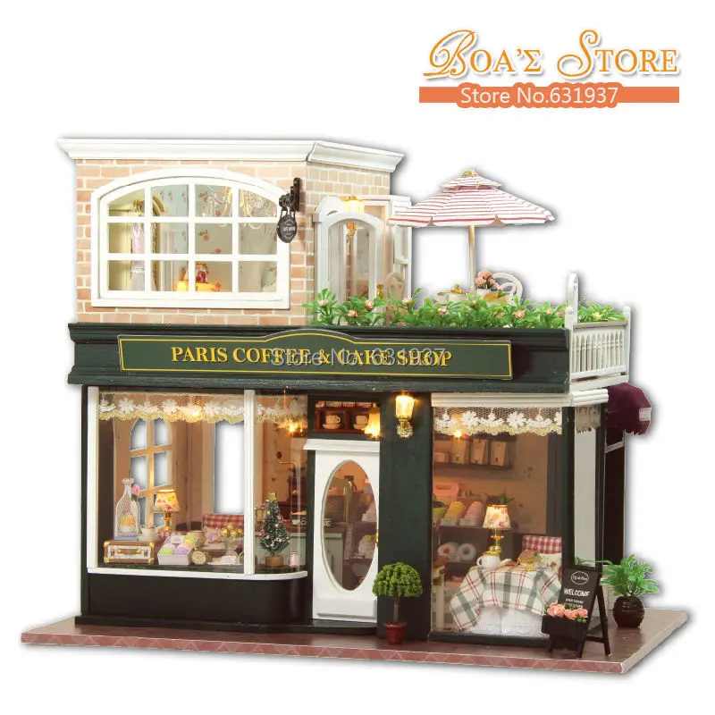 Новинка, большой Миниатюрный Кукольный дом «сделай сам» в кофейне, креативная 3d-модель пазла, игрушки, кукольные домики, подарок на день рождения и Рождество