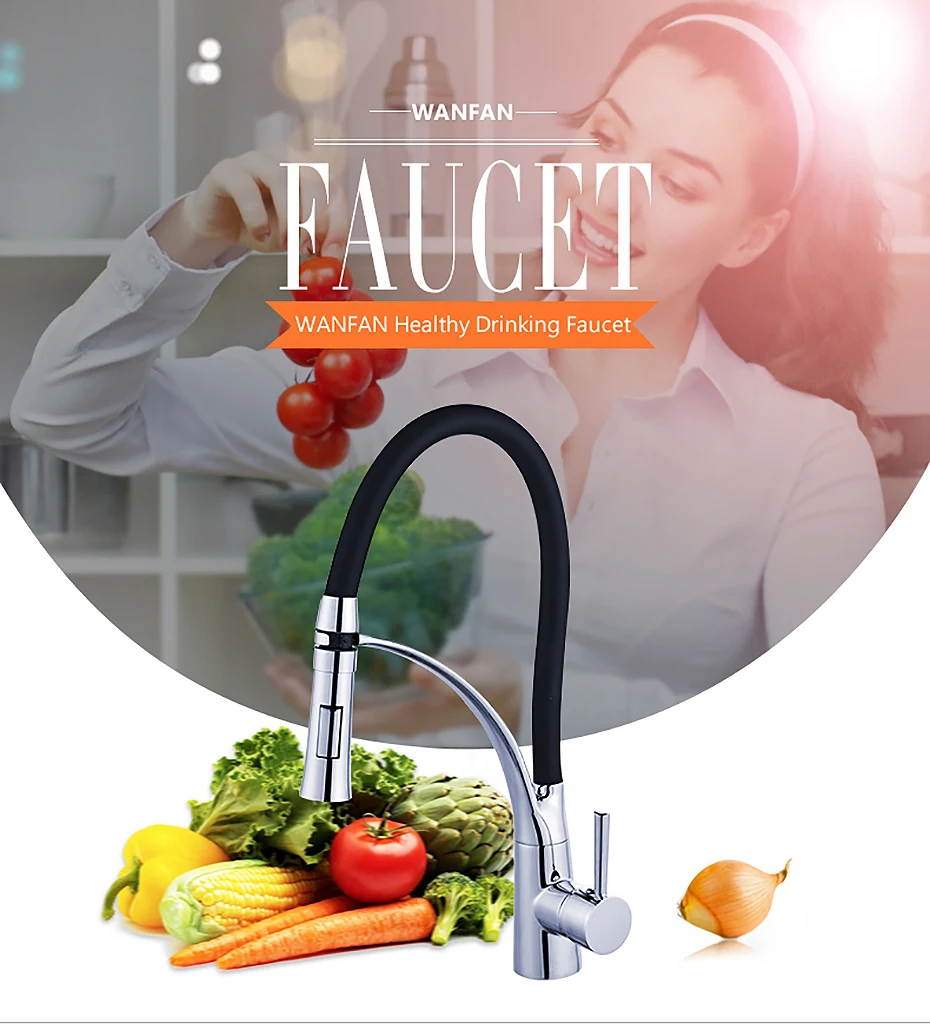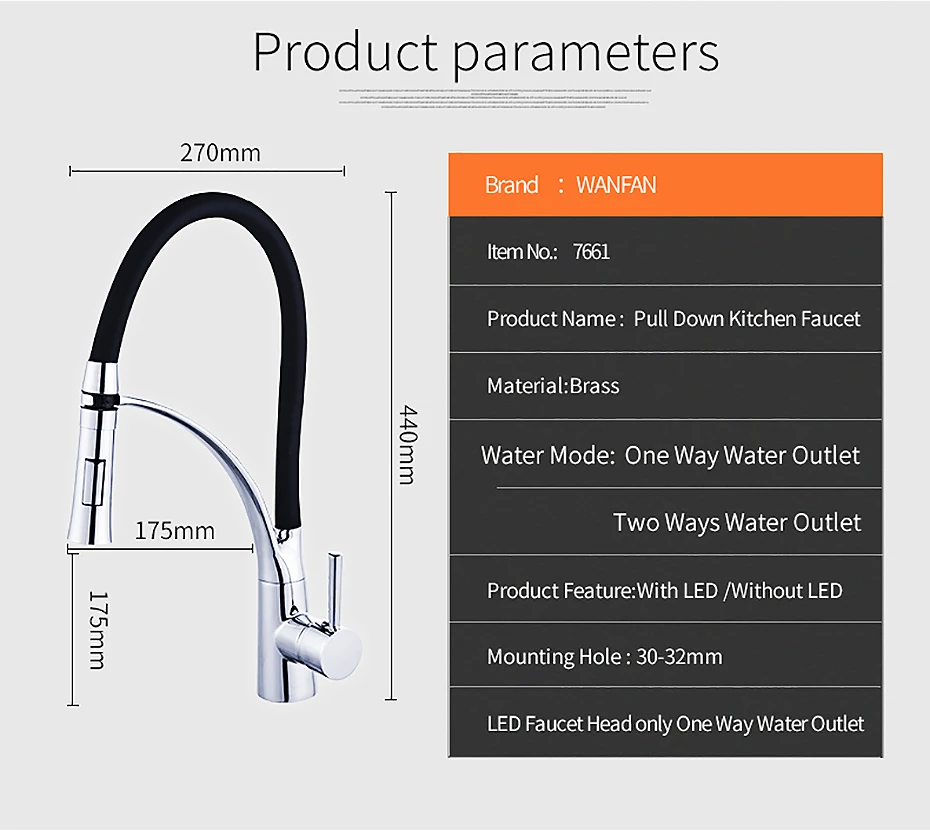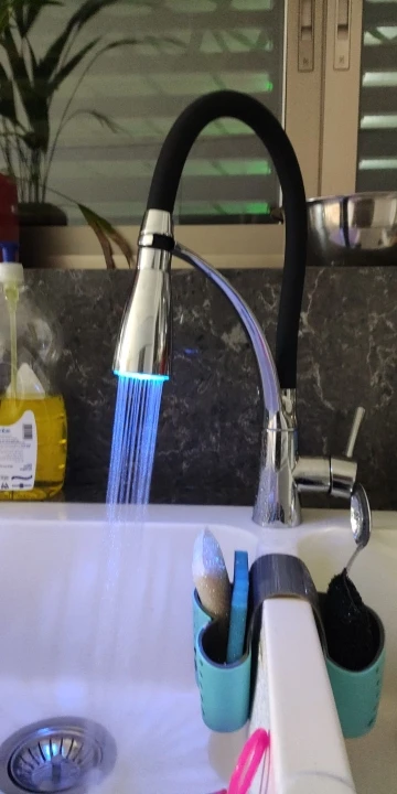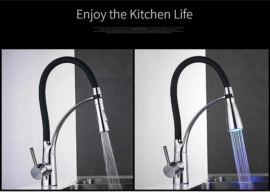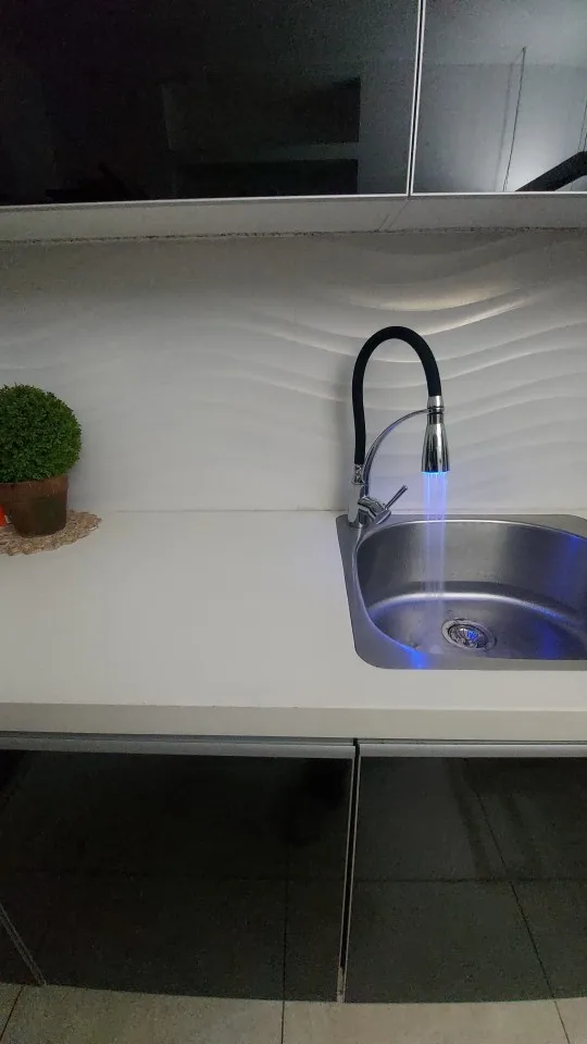 Смеситель для кухни, с резиновым покрытием, хромированный, со светодиодной подсветкой, с одной ручкой, для раковины, 7661