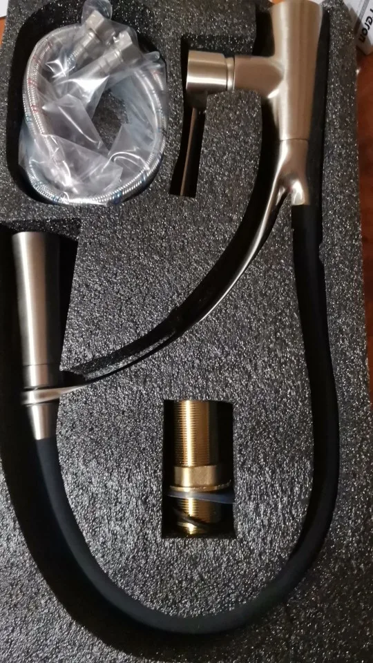 Доставка по России - быстрая. Выгляди солидно, довольно большой и тяжелый. Как уже писали - лейка на толстом резиновом шланге (без фиксации формы), в лейке очень маленькие дырочки (струя сильная и разбрызгивается - лучше было взять вариант без подсветки, зато с переключением режима струи), светится только при сильном (или средне-сильном) напоре. Установка не составляет больших проблем, если вы будете это делать в правильном порядке. Вызвала сомнение то, что гибкие подводки можно прикрутить только рукой. Место подключения находится глубоко внутри крана и туда ничем не залезть, чтобы затянуть потуже. Но пока не капает (пока не рассохлась уплотнительная резинка). В целом - оригинально и солидно выглядит. Цена заметно ниже внешнего вида, а сколько прослужит знает только китайский производитель.
