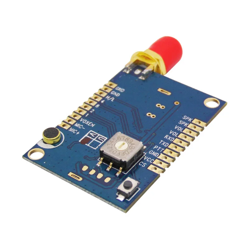 Вращающийся переключатель для выбора канала, EEPROM, аудио усилитель, РЧ усилитель, ключ PTT, гнездо антенны включены в такой небольшой модуль размера. Кроме того, все параметры (CTCSS, CDCSS, SQ, предварительно установленные каналы и т. Д.) могут быть легко модифицированы либо по ПК, либо командой с помощью интерфейса UART. Со встроенной схемой поворота звука, пользователь может припаять только переменный резистор на Pin16, Pin17, чтобы регулировать громкость бесступенчато.