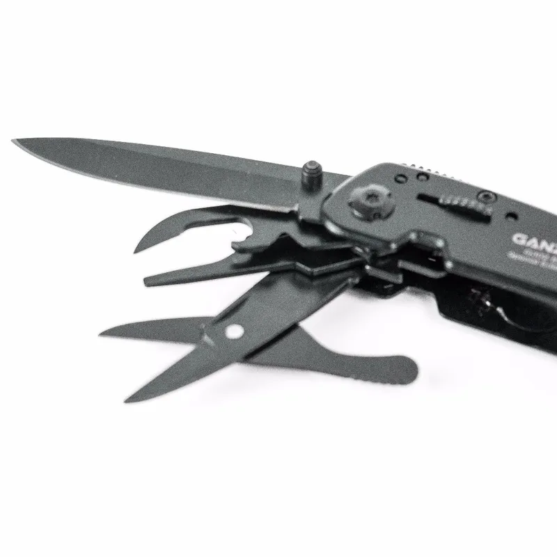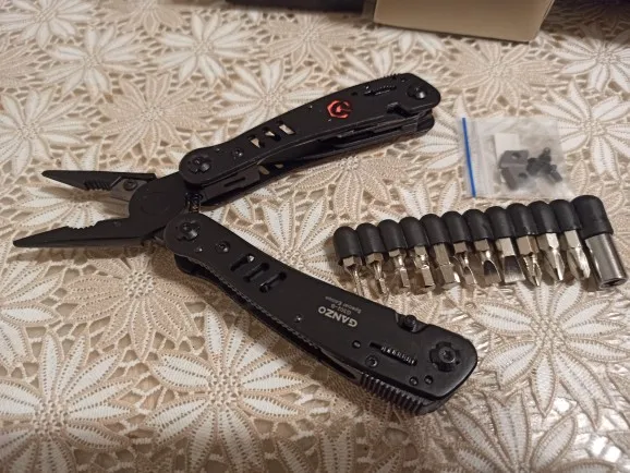 Мультитул красивая безделушка, качество хорошее, ничего не люфтит, ножи и ножницы хорошо наточены. В руке лежит неудобно, скользит. На мой взгляд ручки можно было сделать, чтоб сжимались ближе друг к другу. А так приходиться поддерживать второй рукой. Цена явно завышена, коробка сделана красиво, даже не помялась. Отличный вариант для подарка. Доставка очень долгая 80 дней, заказал 7 декабря, получил 24 февраля. Продавец даже продлял время доставки.